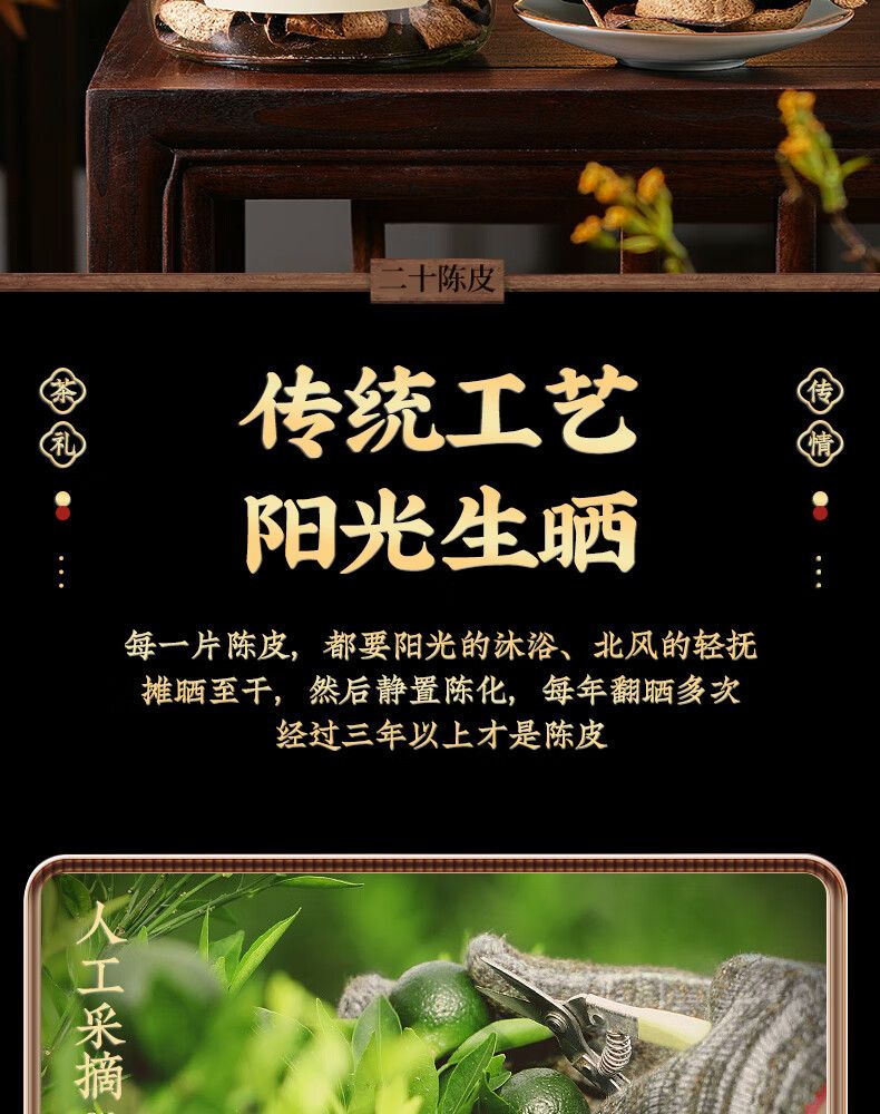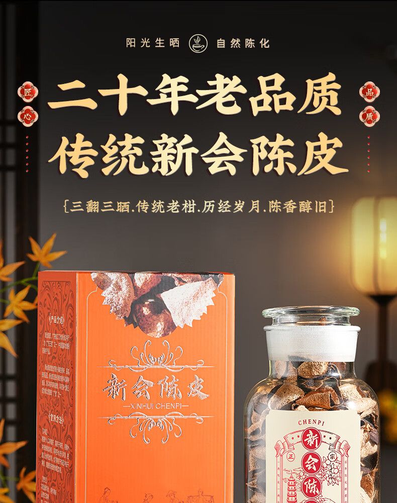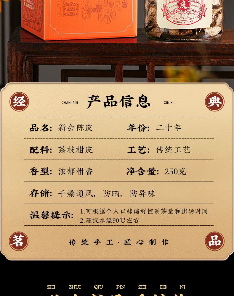 商品名称:杰盈陈皮新会20年东甲陈皮珍藏版玻璃瓶礼盒装250g送礼送朋友