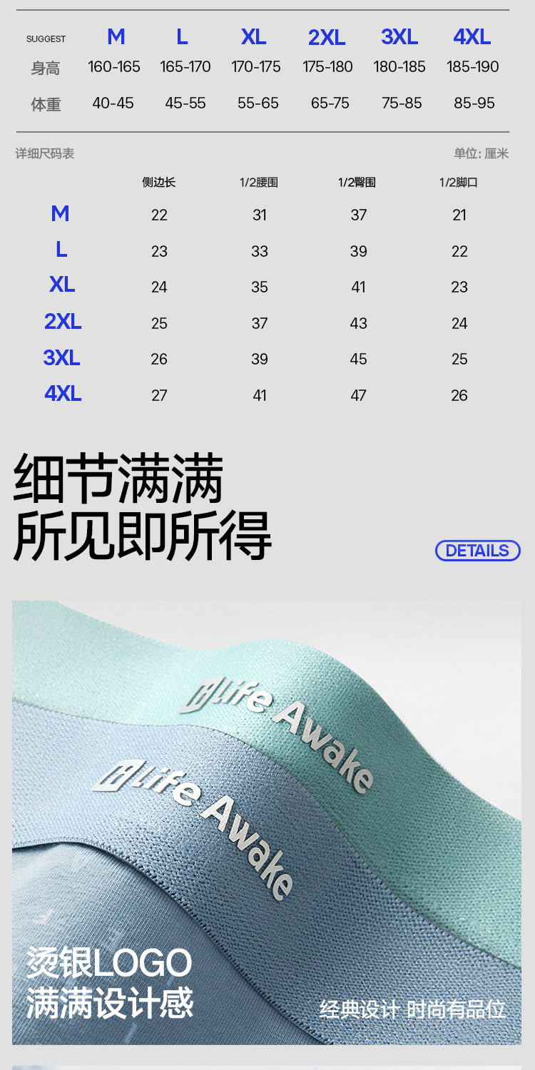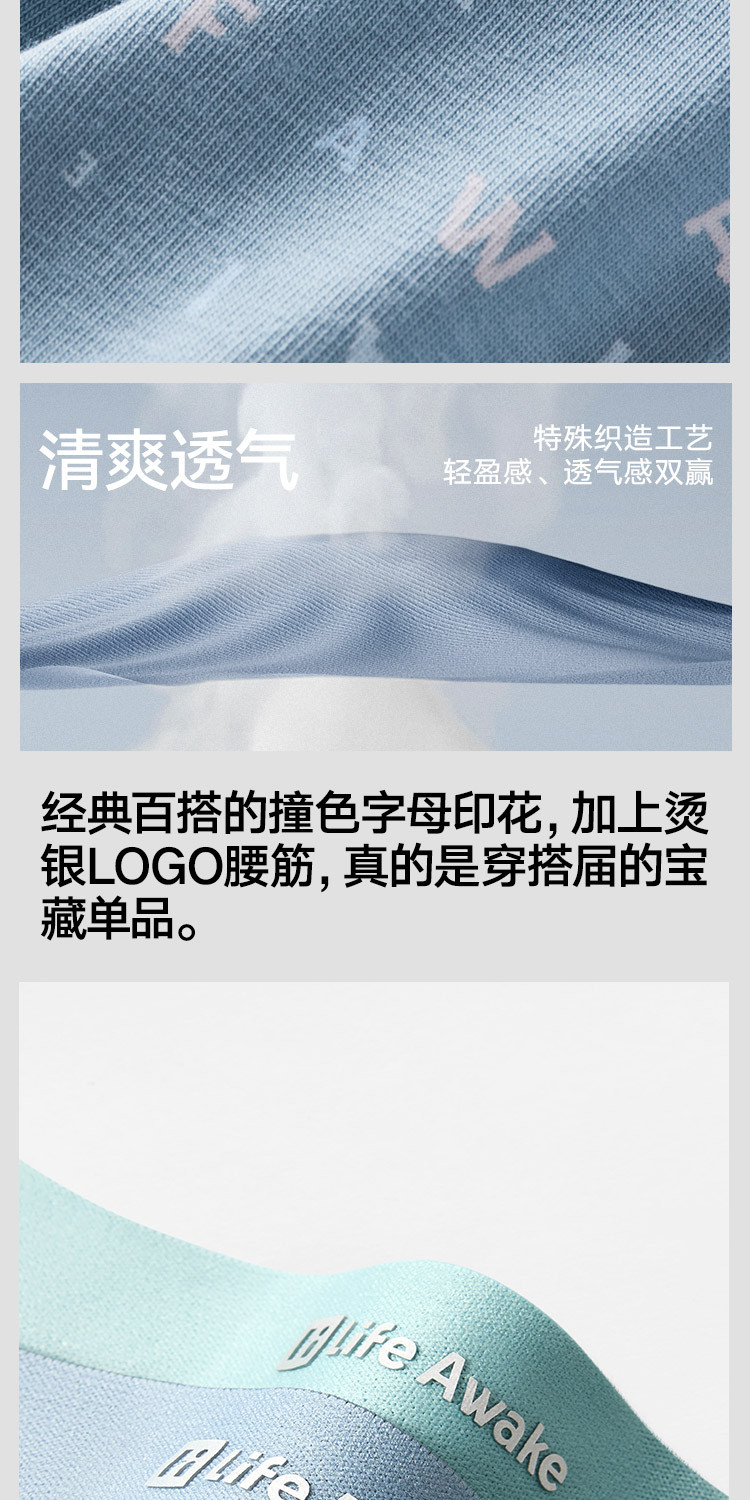 商品名称:【5A抑菌裆】3条装男士内裤平角印花夏季薄款透气四角短裤衩男 778650