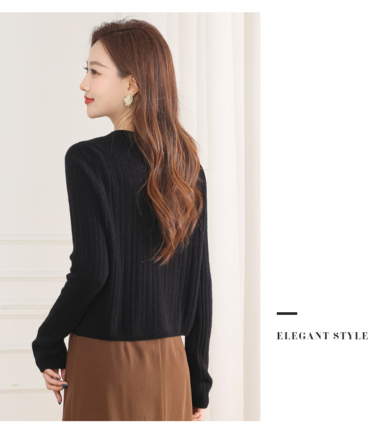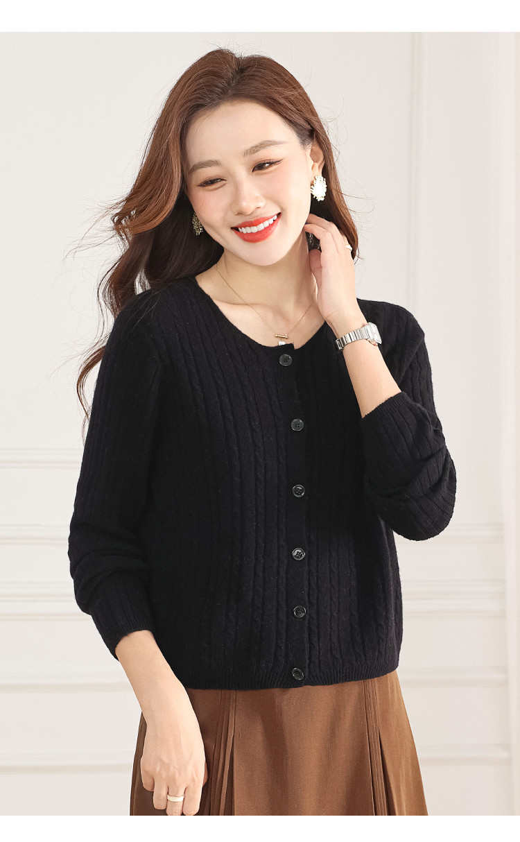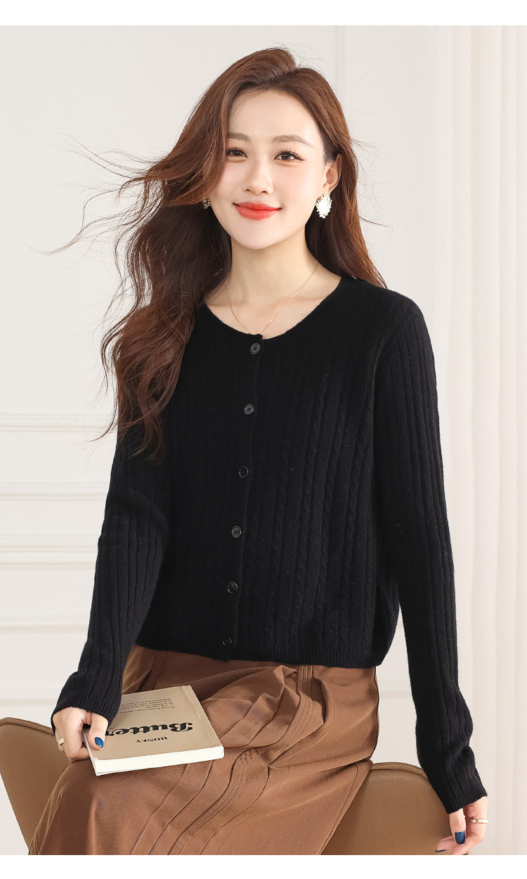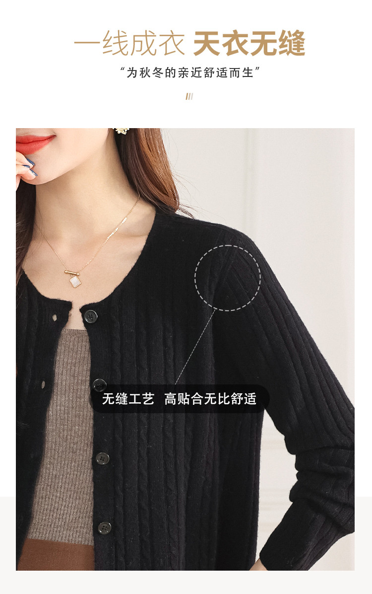 商品名称:【100%绵羊毛】无缝圆领坑条羊毛开衫纯色休闲针织毛衣外套 959315