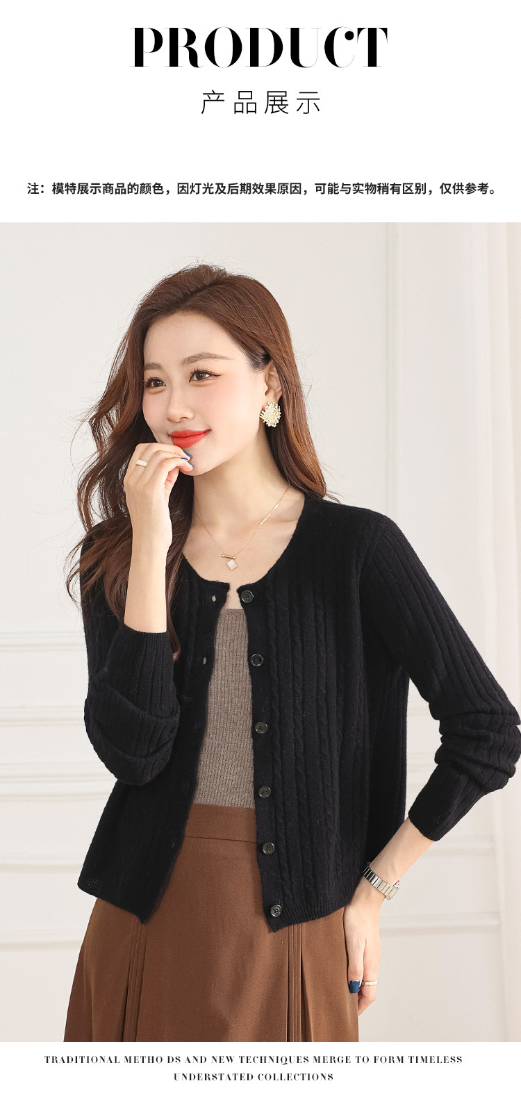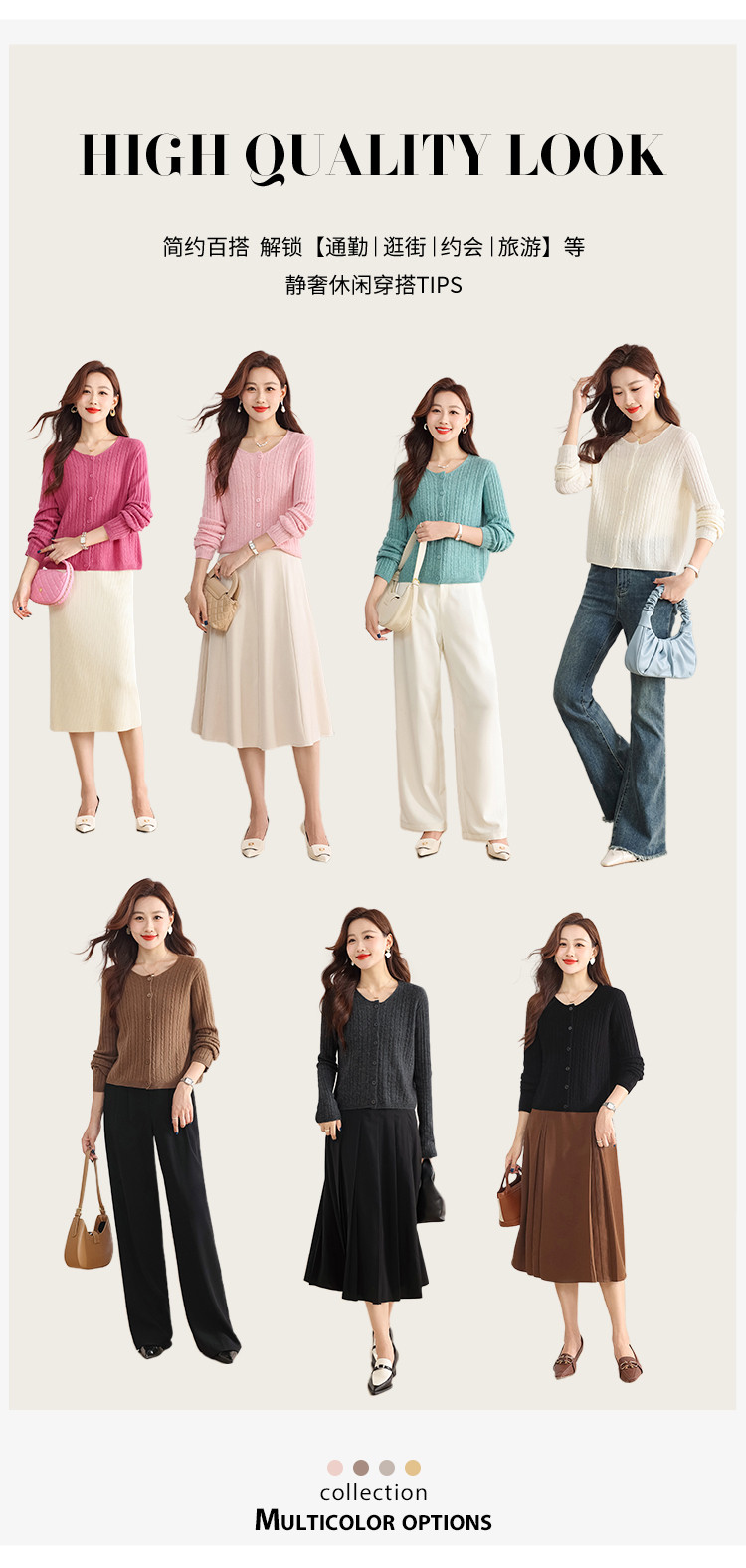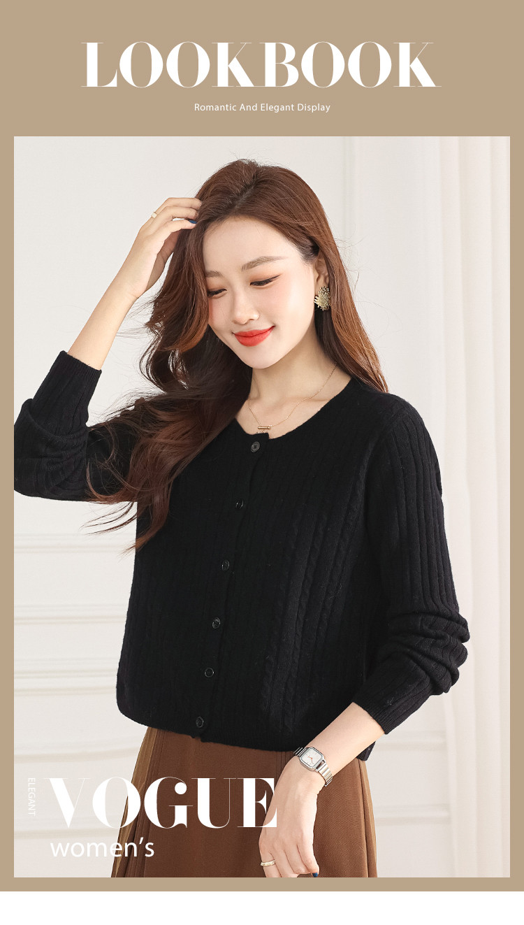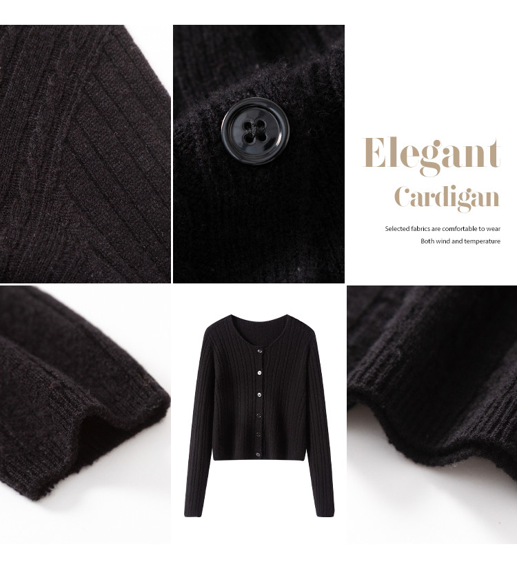 商品名称:【100%绵羊毛】无缝圆领坑条羊毛开衫纯色休闲针织毛衣外套 959315