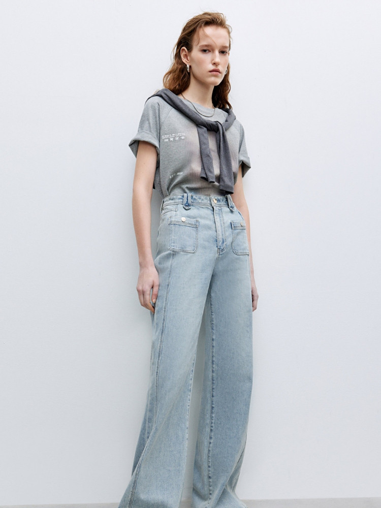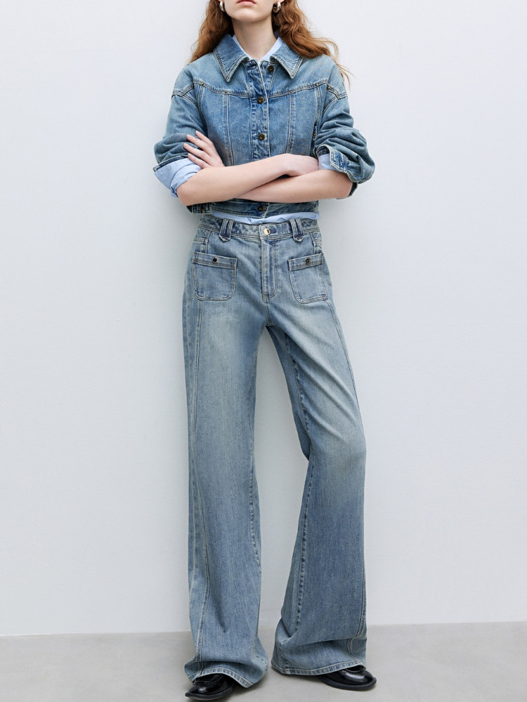 商品名称:【双裤线设计】2025夏季时尚舒适高腰显瘦喇叭裤长裤牛仔裤女 040794