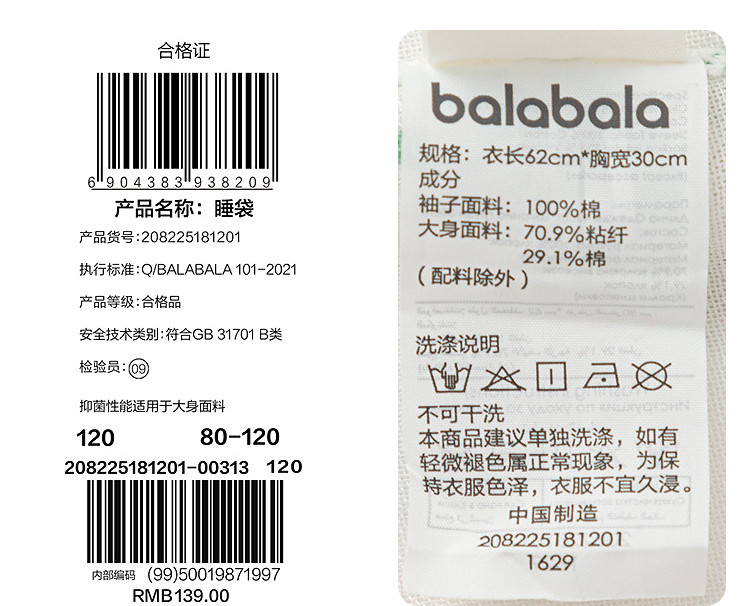 商品名称:婴儿睡袋包单新生儿包被宝宝儿童睡衣2025夏款抑菌易洗易干 273605