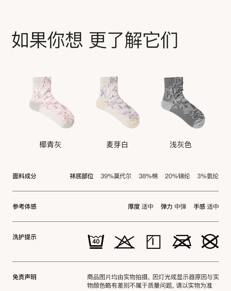 商品名称:【5A抗菌2双装】新款莫代尔立体桃花中筒袜舒适亲肤袜子女夏季 416192