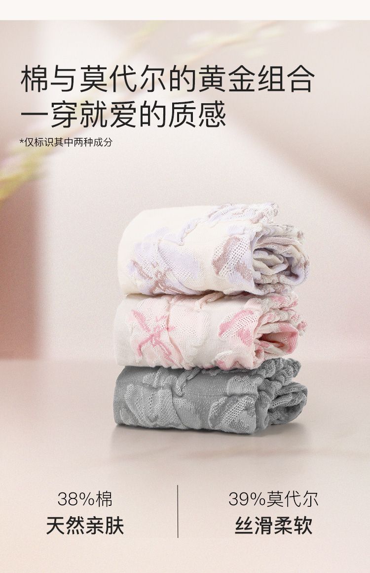 【5A抗菌2双装】新款莫代尔立体桃花中筒袜舒适亲肤袜子女夏季 416192