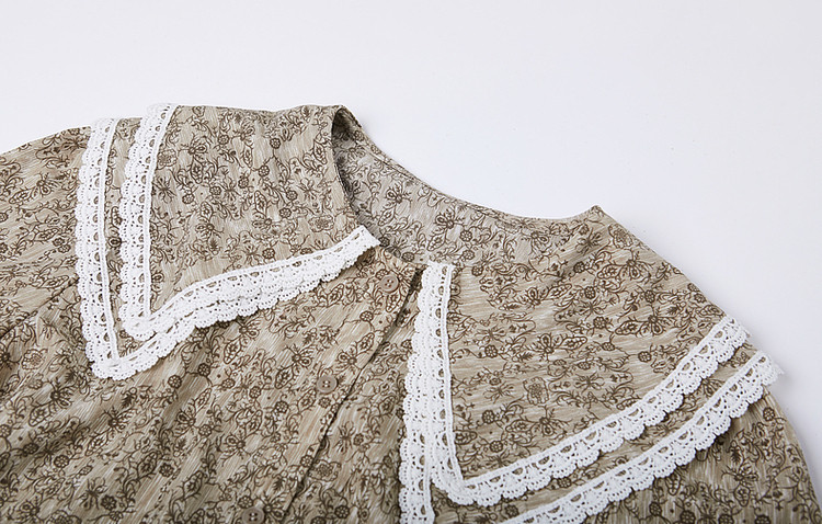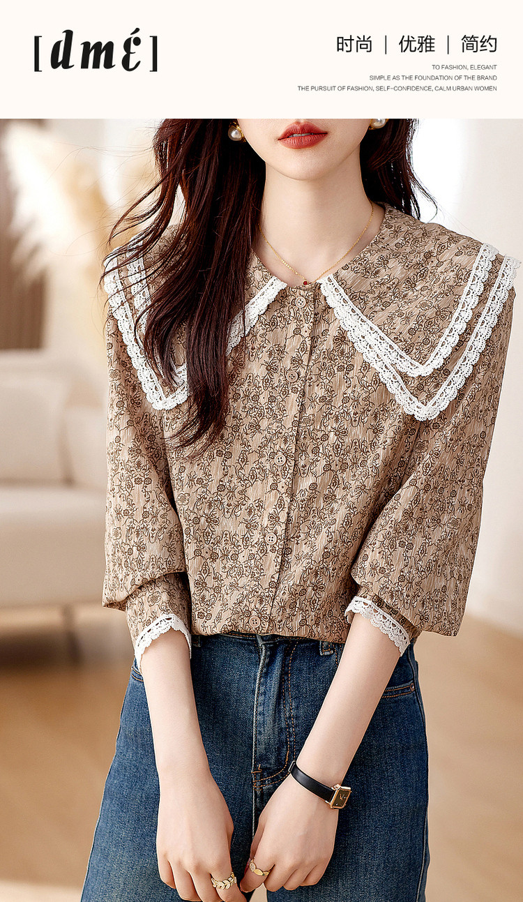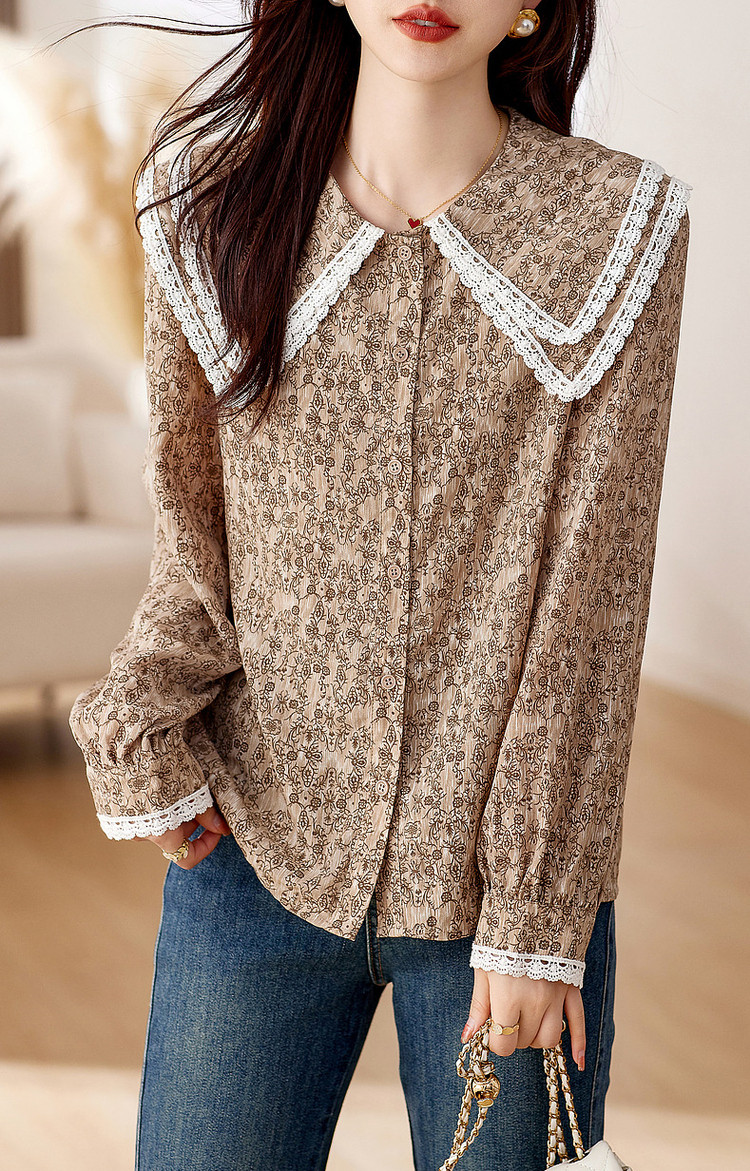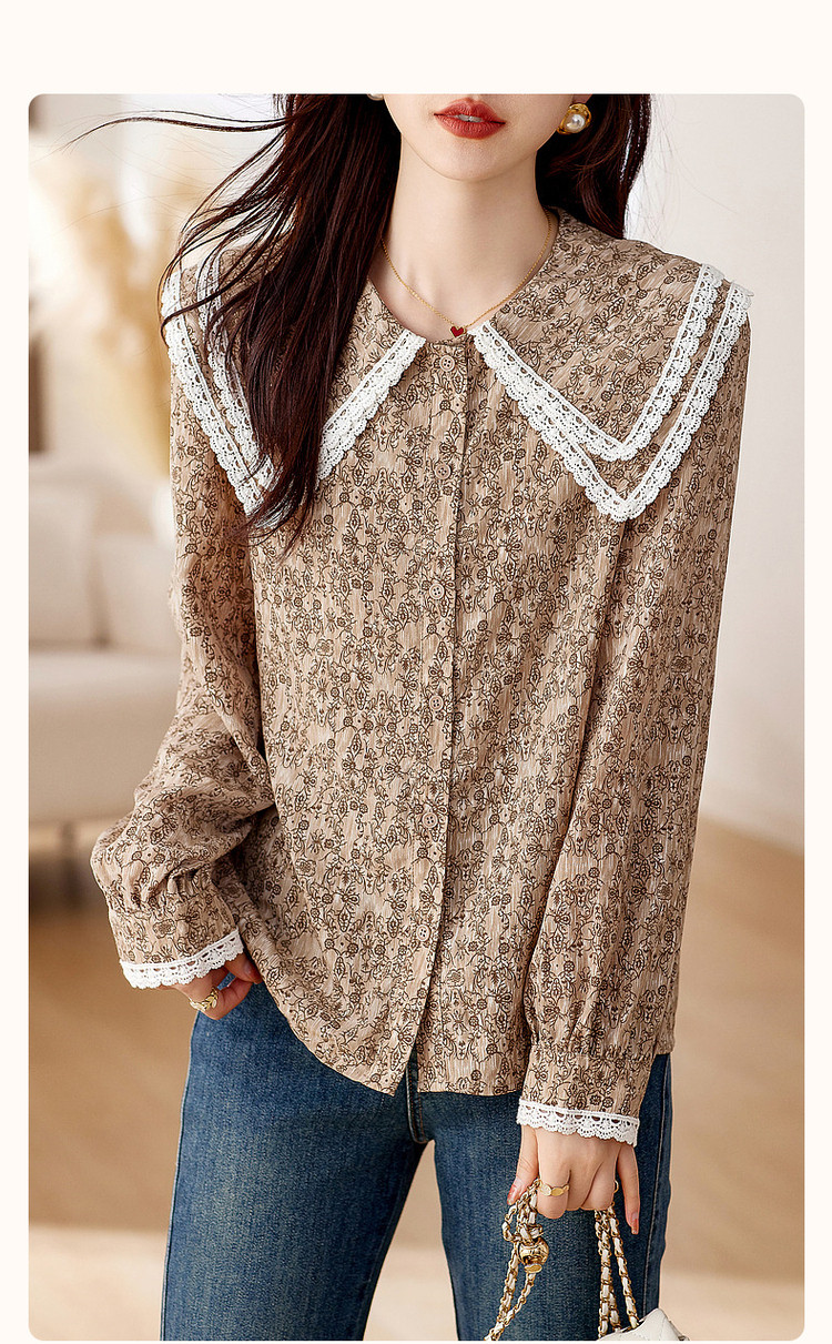 【复古甜美撞色碎花衬衫】秋双层领灯笼袖衬衣上衣 311169