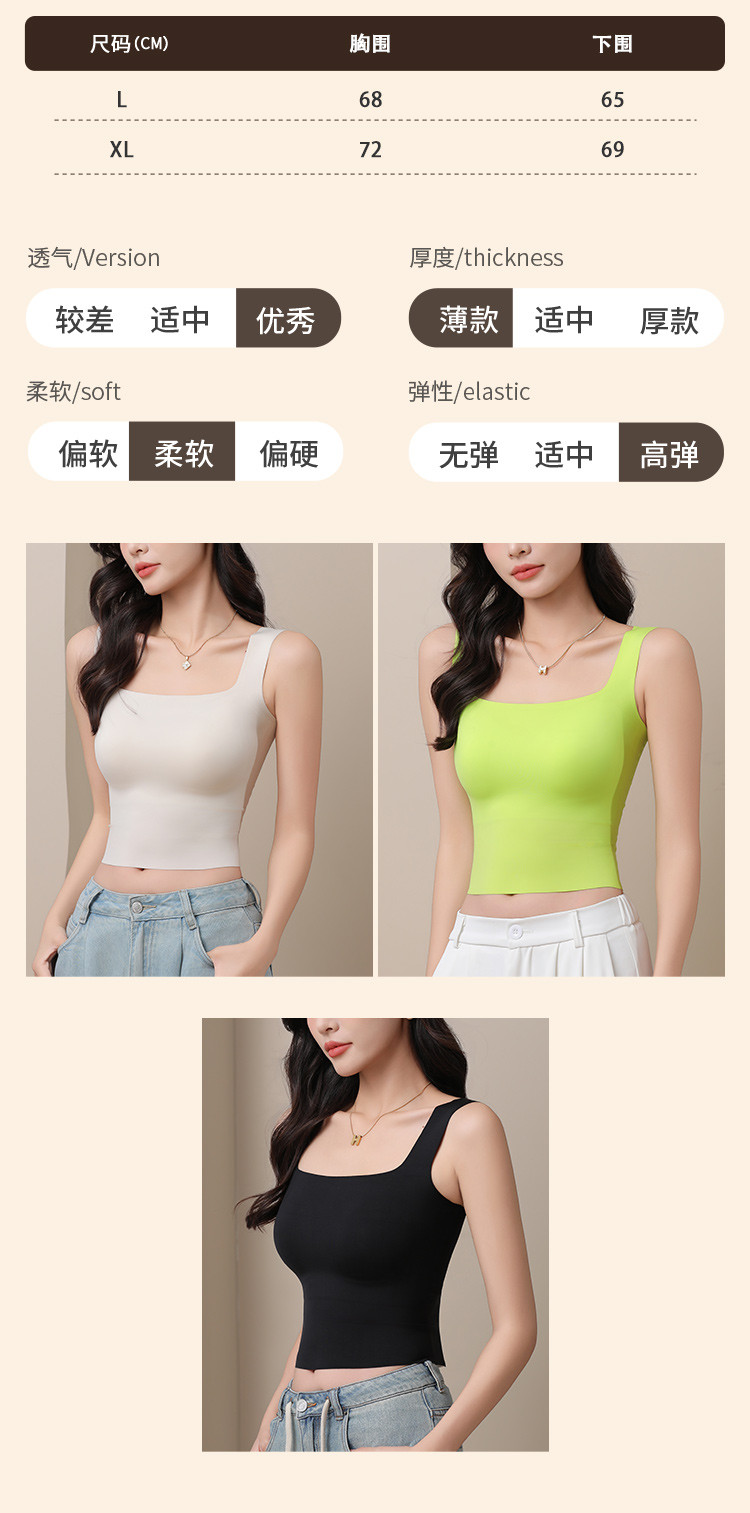 商品名称:吊带背心一体带胸垫背心春夏薄款修身显瘦美背内衣女高级感可外穿 049099