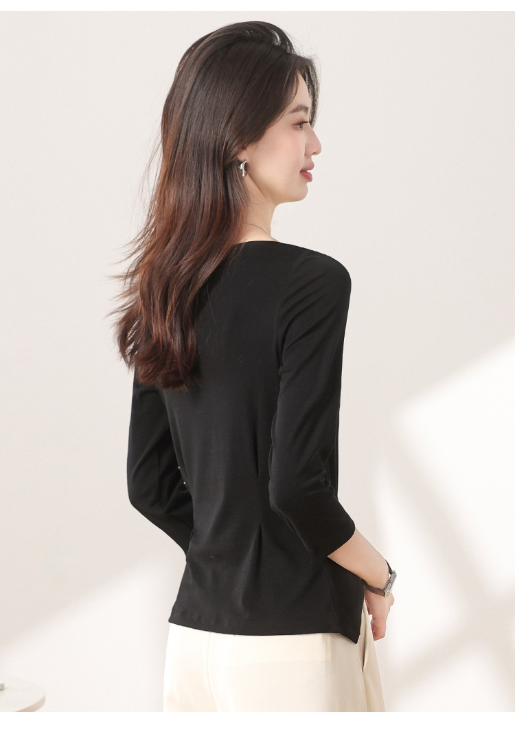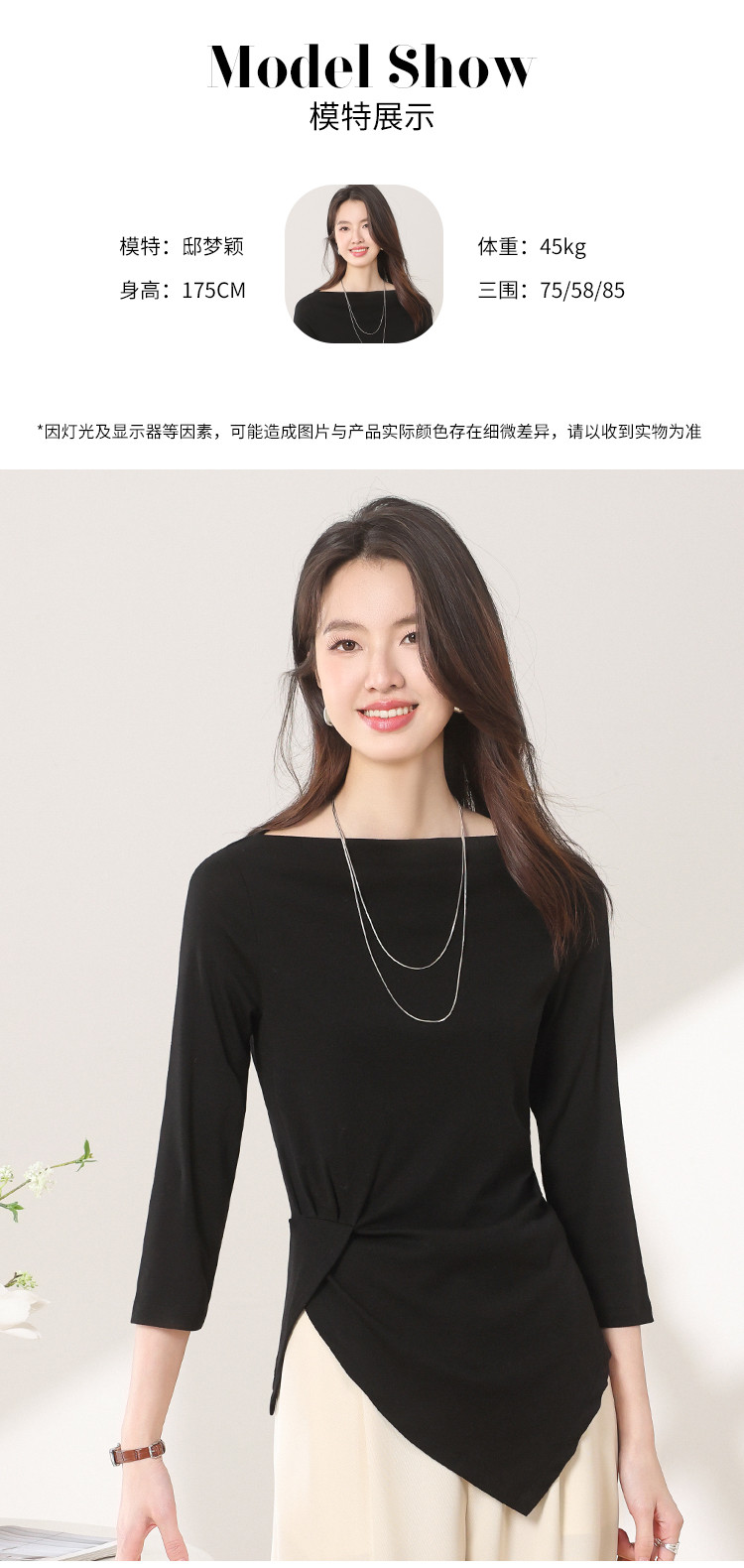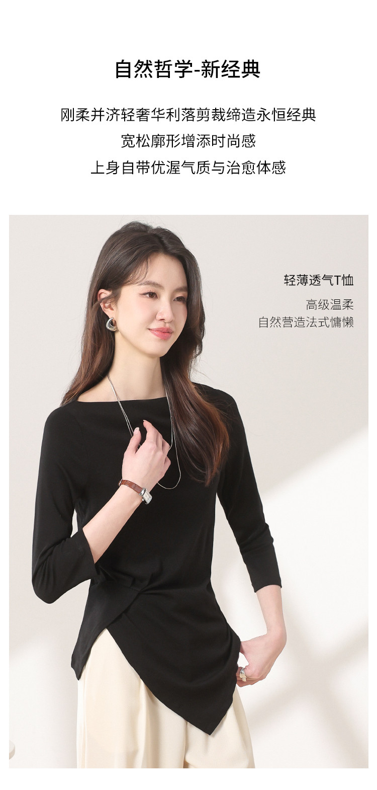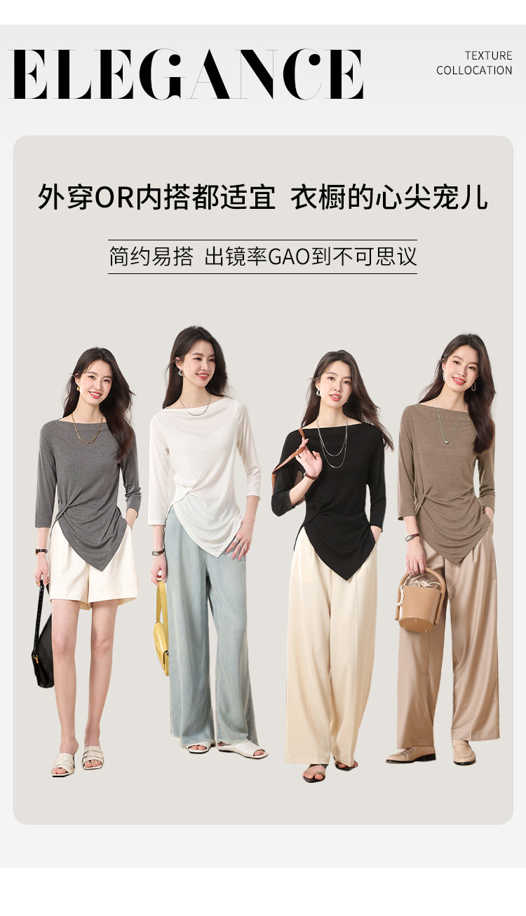 商品名称:【含桑蚕丝】法式一字领纯色薄款针织衫女简约休闲长袖不规则T恤 595475