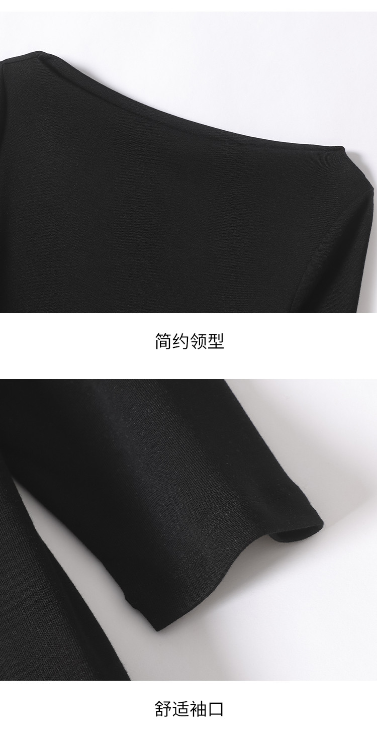 【含桑蚕丝】法式一字领纯色薄款针织衫女简约休闲长袖不规则T恤 595475