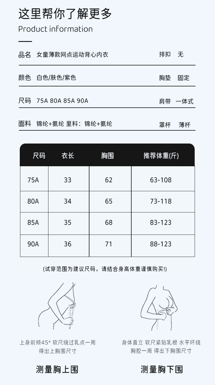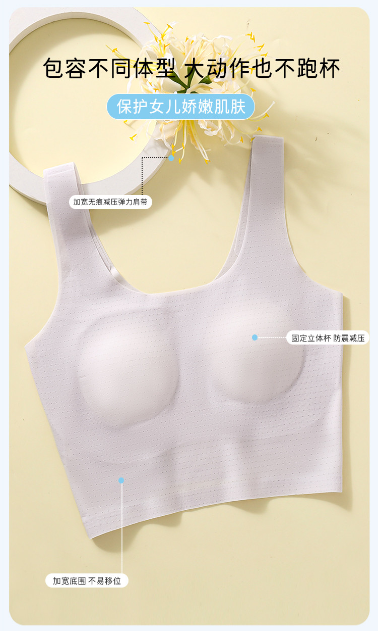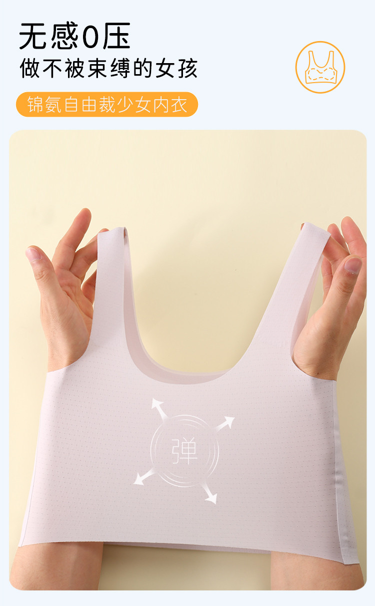 商品名称:【8-12岁发育背心】薄款网孔透气女童运动内衣防凸点一阶文胸 603102