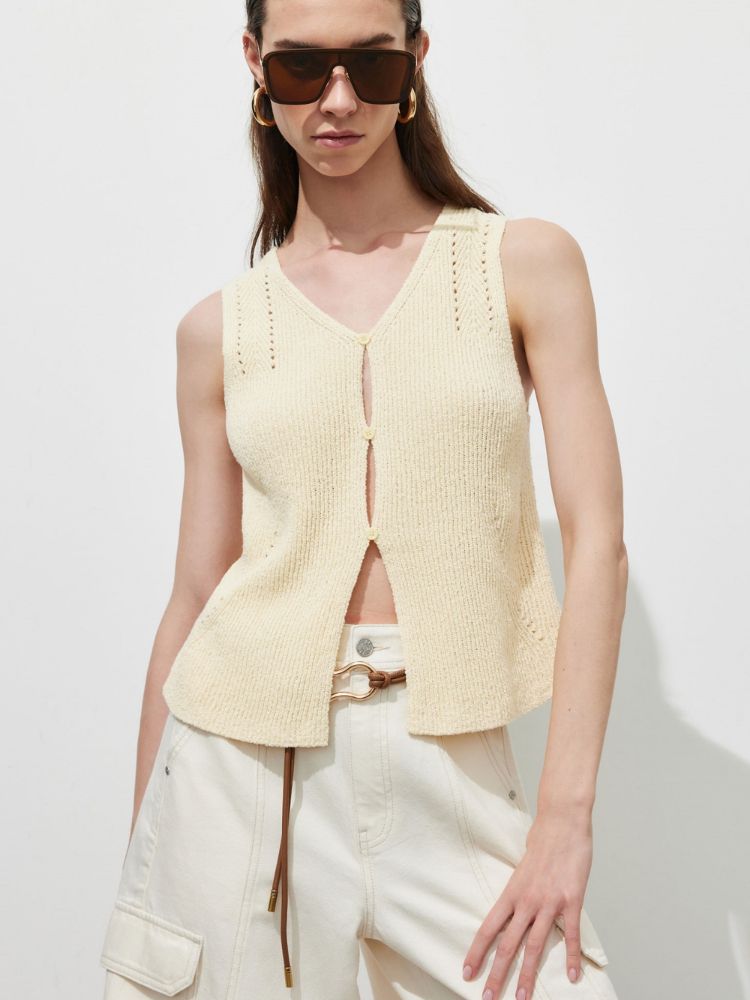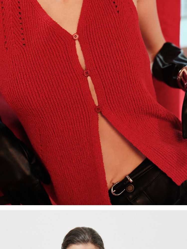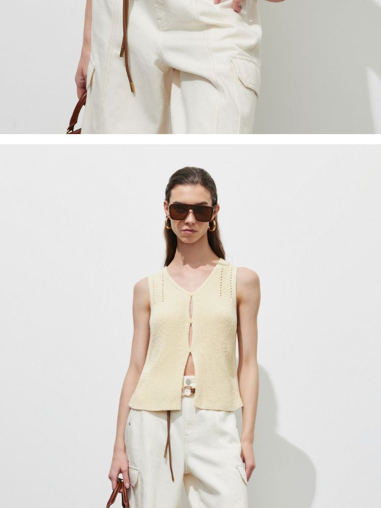 商品名称:【复古马甲】2025春季美式纯色宽松纽扣无袖开衫马甲针织衫女 104154