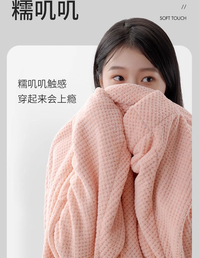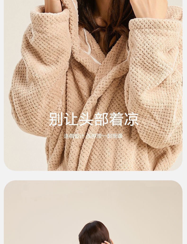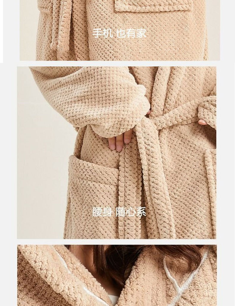 商品名称:菠萝格浴袍成人秋冬连帽珊瑚绒浴衣吸水快干柔软男女情侣款浴服四季款睡袍