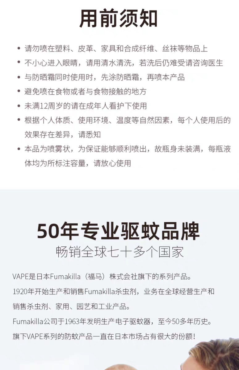 商品名称:VAPE 日版金色天使驱蚊喷雾 200ml