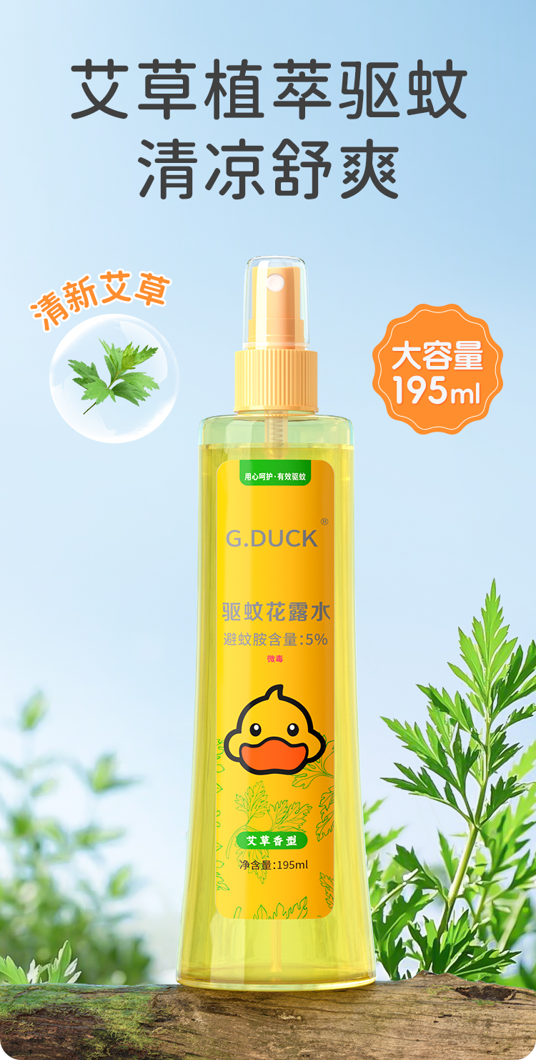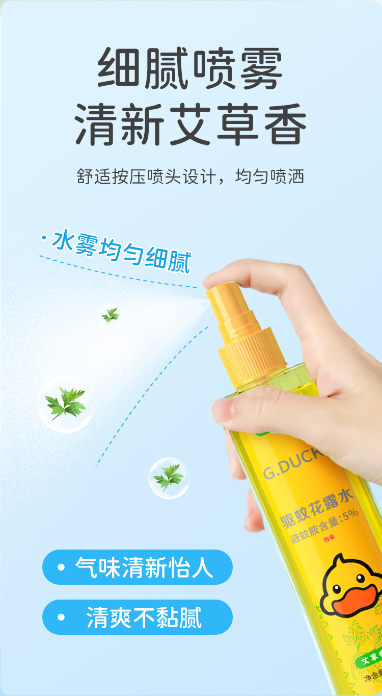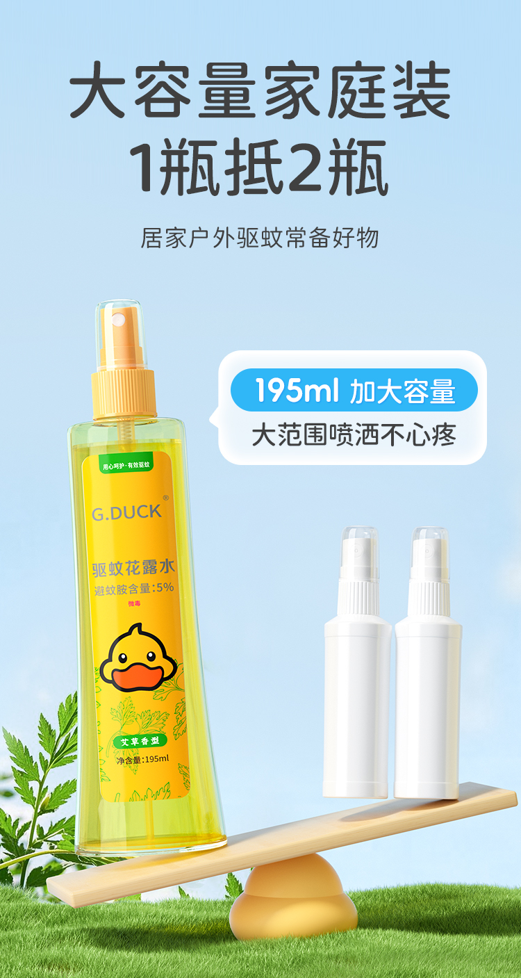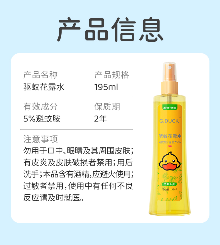 商品名称:【1瓶拿样】 G.DUCK小黄鸭花露水户外防蚊虫叮咬冰爽清凉驱蚊喷雾防蚊液195ml大容量