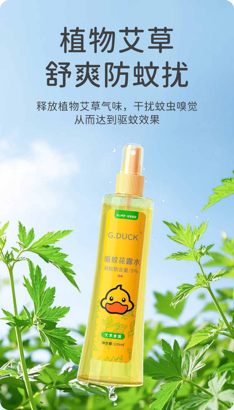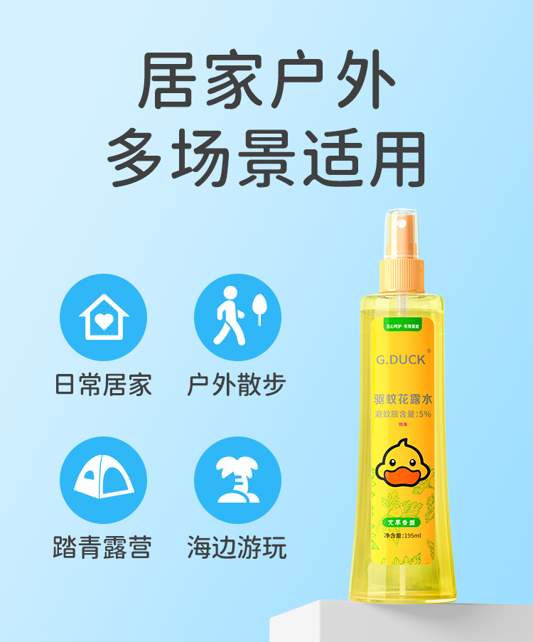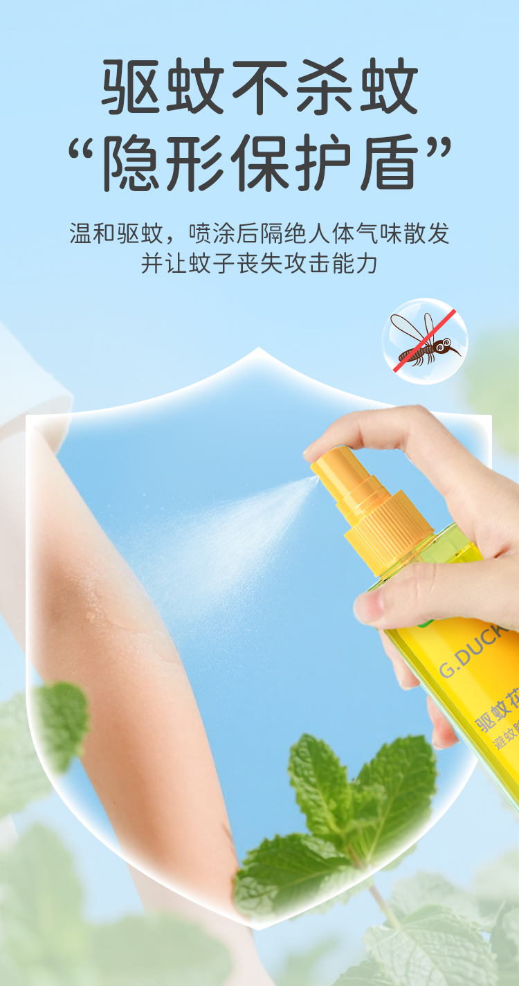 商品名称:【1瓶拿样】 G.DUCK小黄鸭花露水户外防蚊虫叮咬冰爽清凉驱蚊喷雾防蚊液195ml大容量