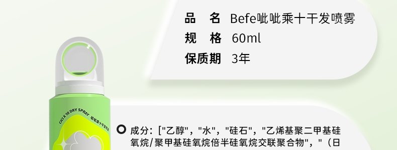商品名称:Befe 呲呲乘十干发喷雾 60ml