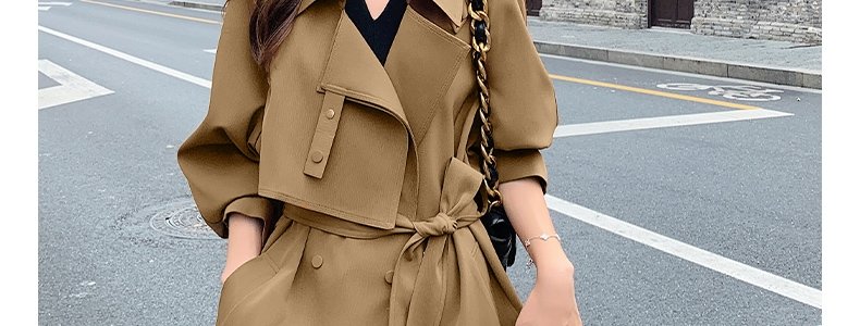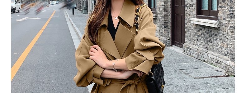 商品名称:mashluxy 垂感腰带小个子风衣 浅焦糖 S码