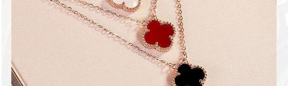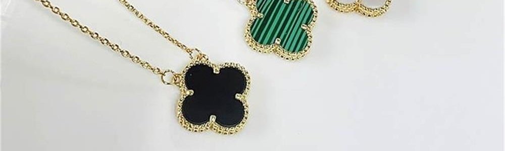 中国金楼 梵尚品 VC四叶草单颗项链 黑玉髓