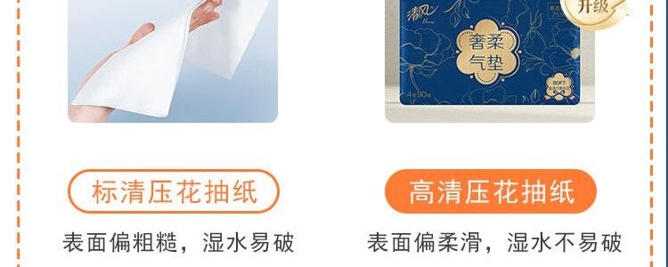 商品名称:清风 奢柔高清立体压花M号抽纸 4层90抽*4包