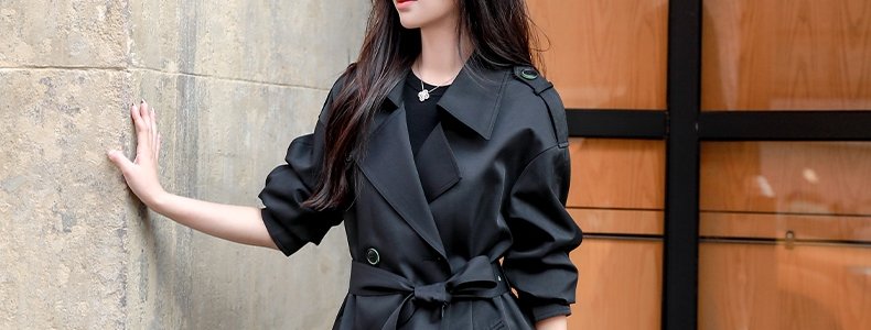 商品名称:mashluxy 挺括感收腰风衣 卡其色 M码