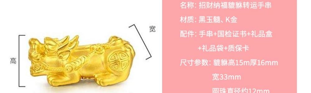 商品名称:中国金楼 梵尚品 K金招财纳福貔貅转运手串