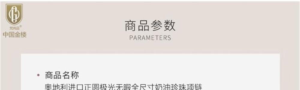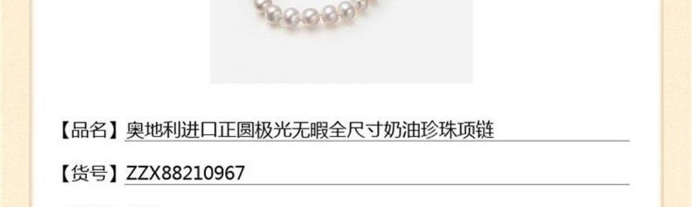 商品名称:中国金楼 梵尚品 奥地利进口正圆极光无暇全尺寸奶油珍珠项链 8mm