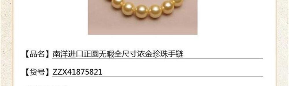商品名称:中国金楼 梵尚品 南洋进口正圆无暇全尺寸浓金珍珠手链 4mm