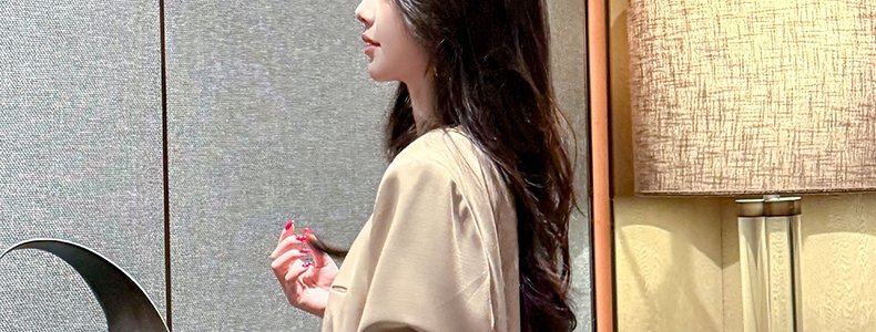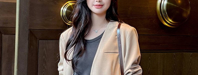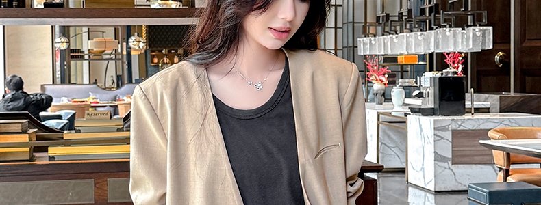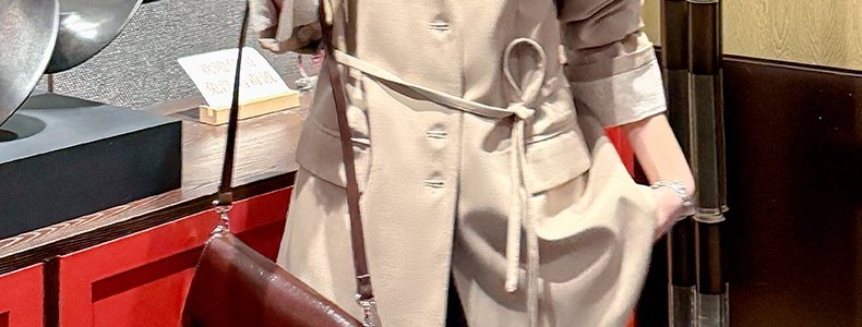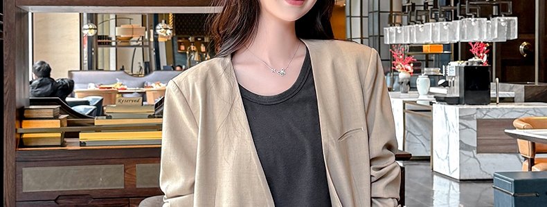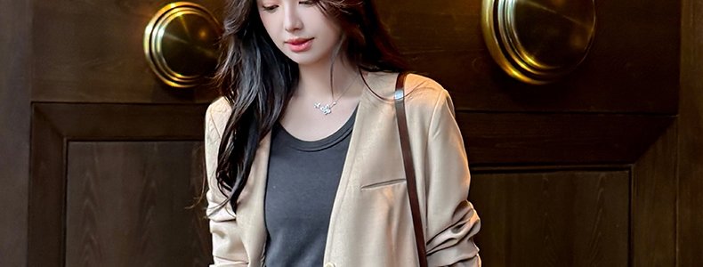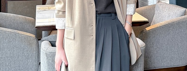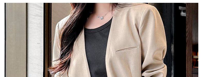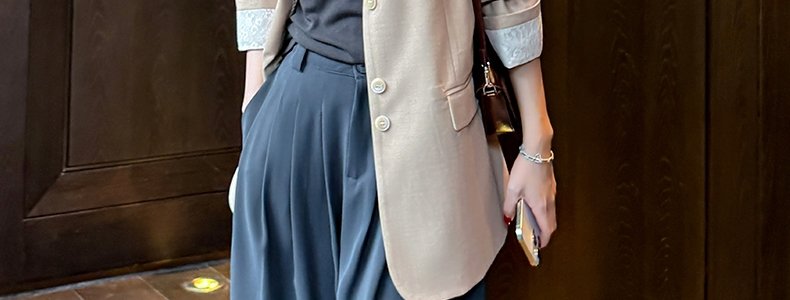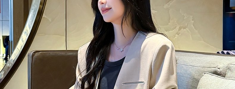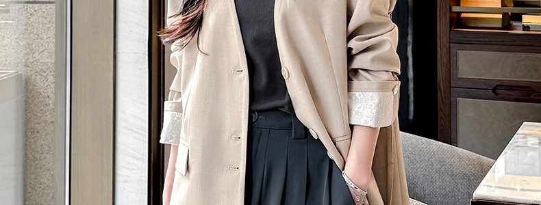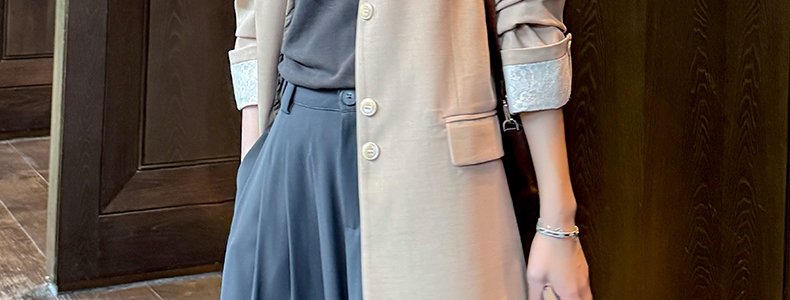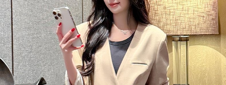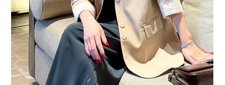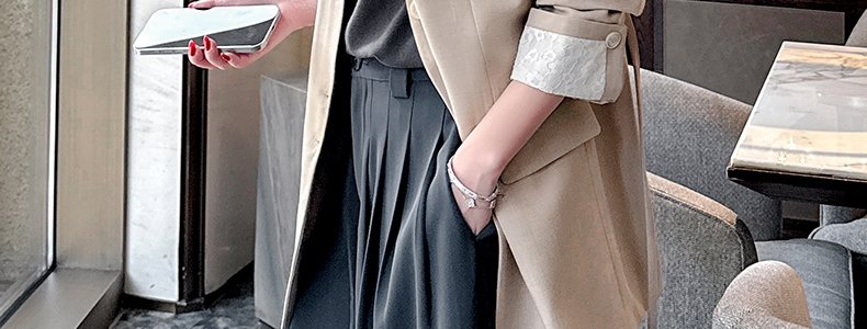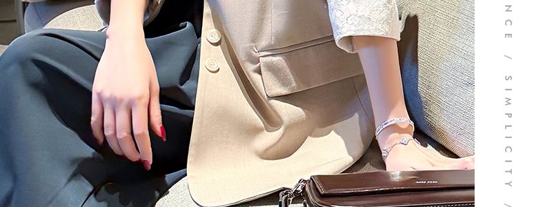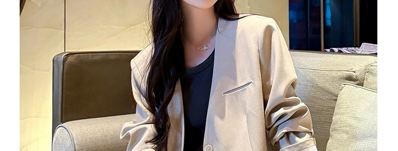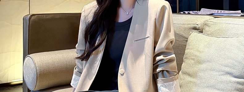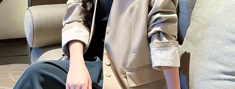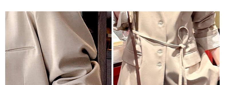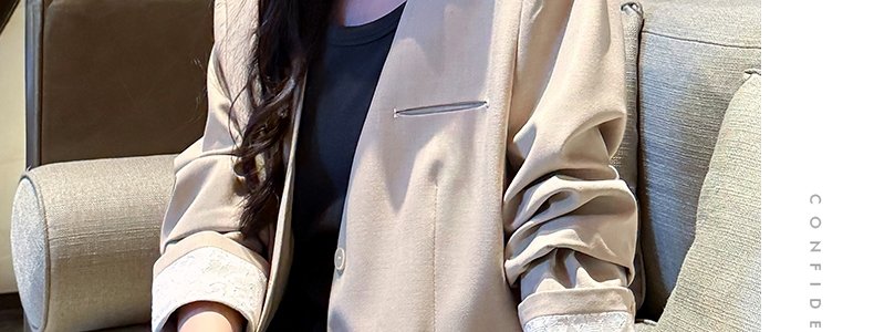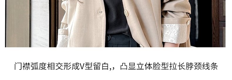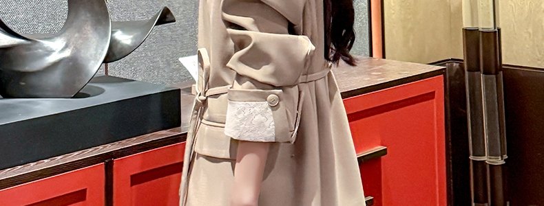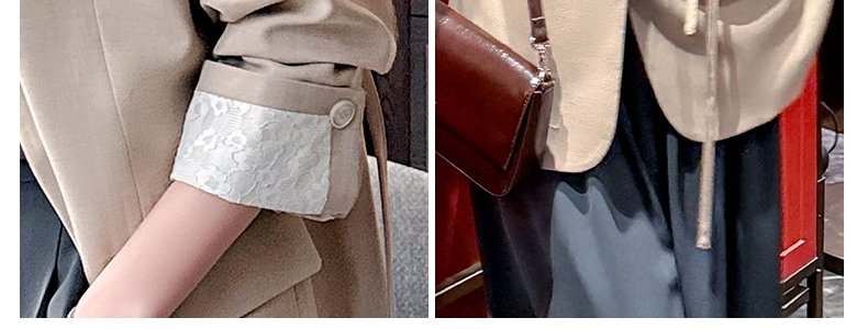 商品名称:mashluxy 袖口蕾丝腰带收腰显瘦西装 卡其色 L码