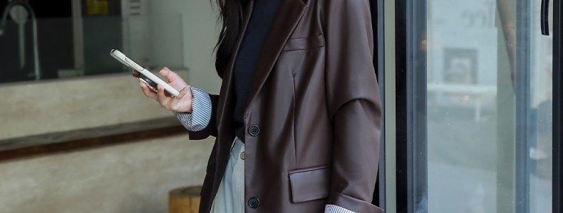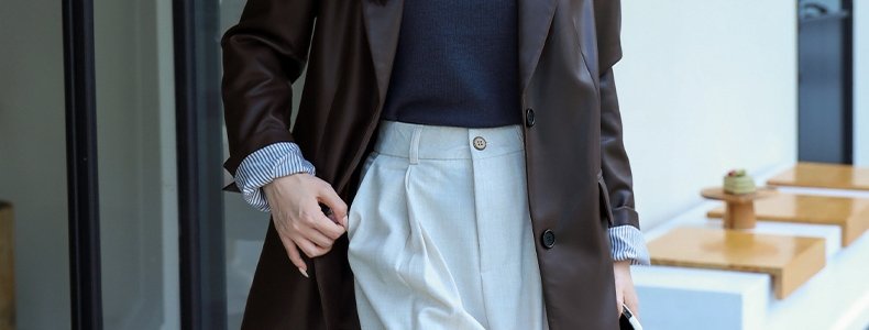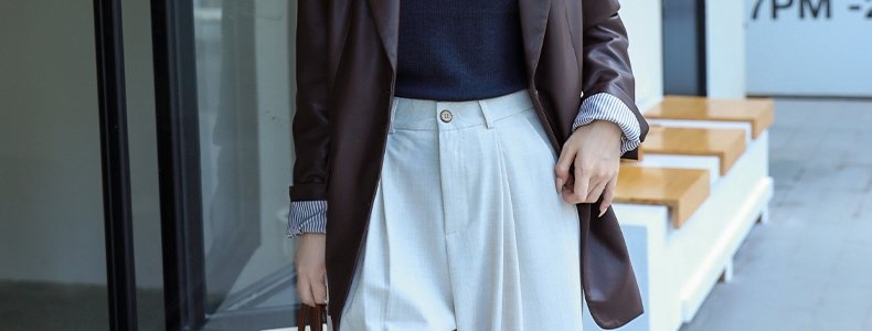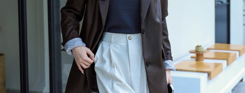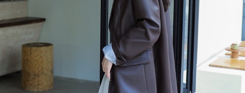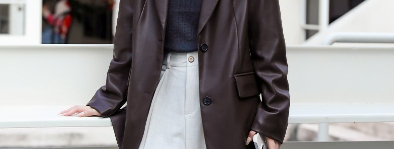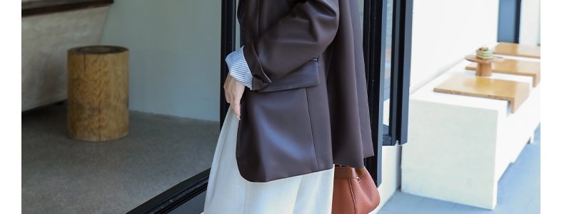 mashluxy 后开叉PU皮衣西装 咖色 XL码