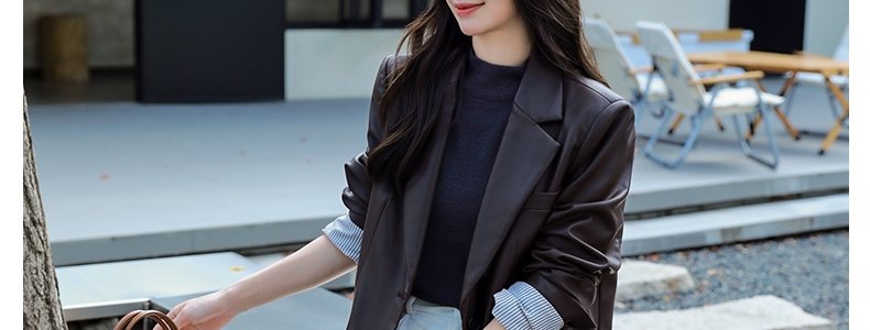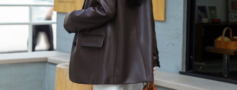 商品名称:mashluxy 后开叉PU皮衣西装 咖色 XL码