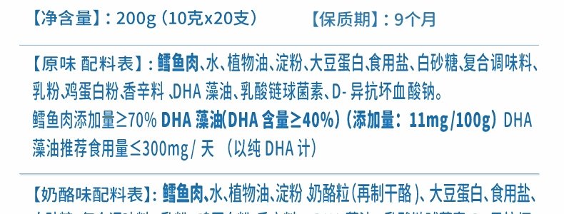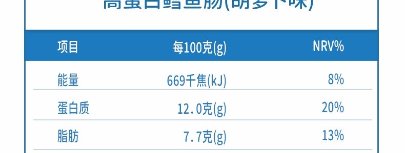 商品名称:力诚宝宝 高蛋白鳕鱼肠 200g*3罐 原味
