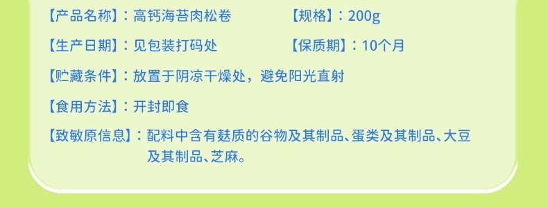 商品名称:力诚宝宝 高钙肉松海苔卷 200g*3盒