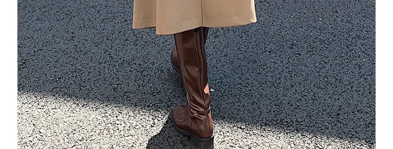 mashluxy 后开叉PU皮衣西装 咖色 XL码