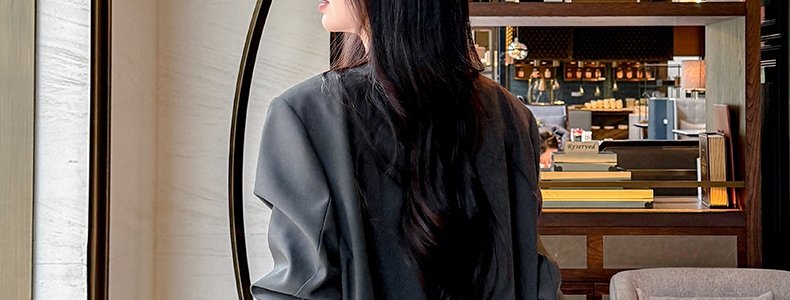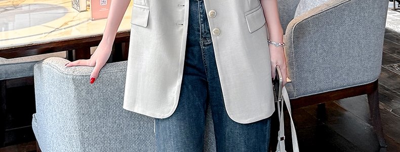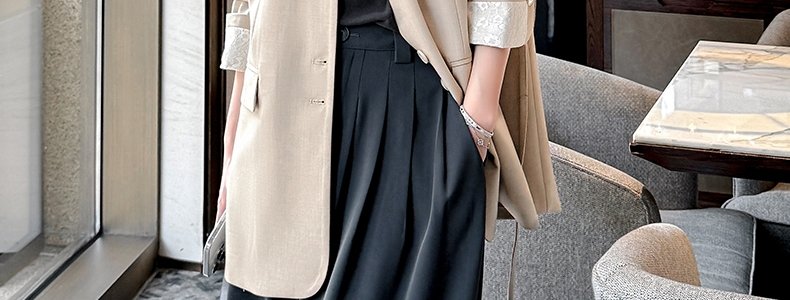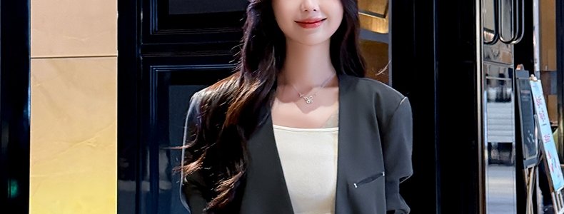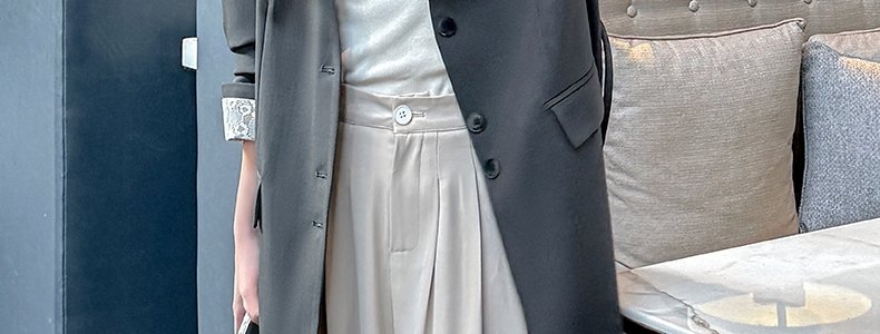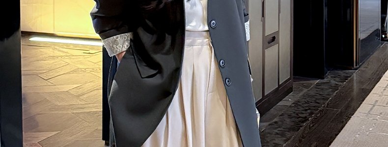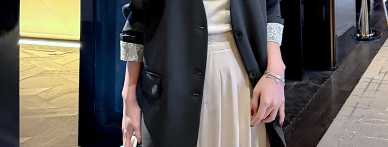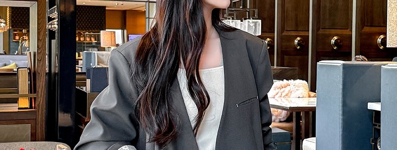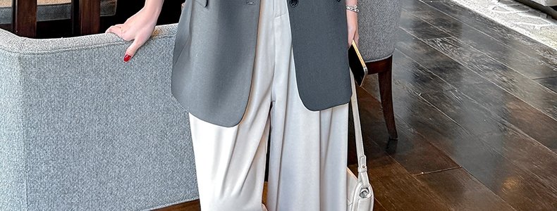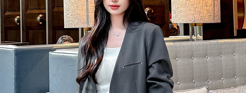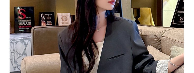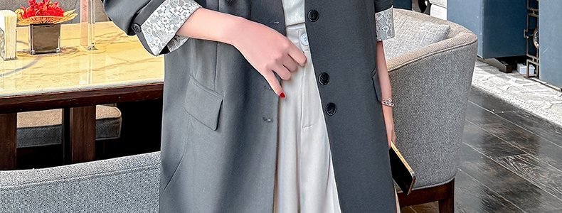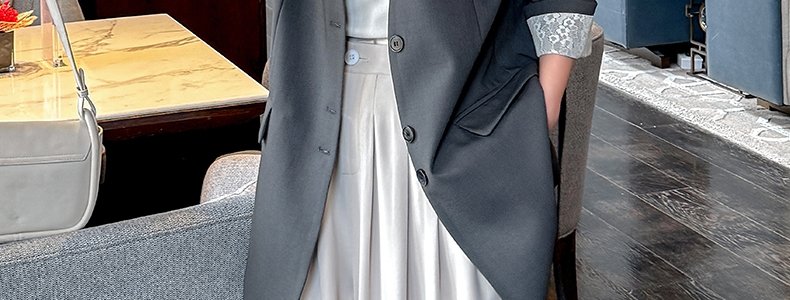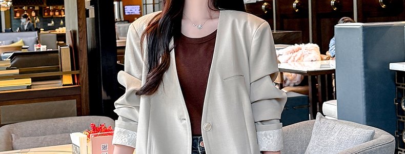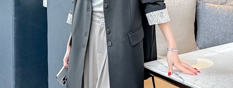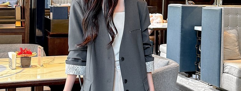 商品名称:mashluxy 袖口蕾丝腰带收腰显瘦西装 灰色 XL码