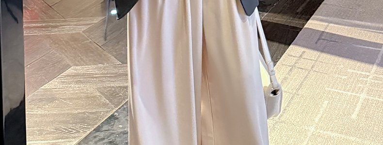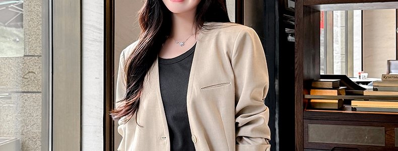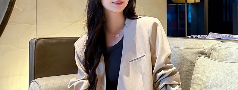 mashluxy 无领系腰带宽松休闲西装 米白色 L码