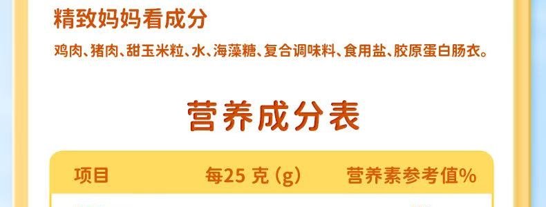 商品名称:力诚宝宝 玉米米肉肉肠 300g+咕咕鸡肉肉肠 300g
