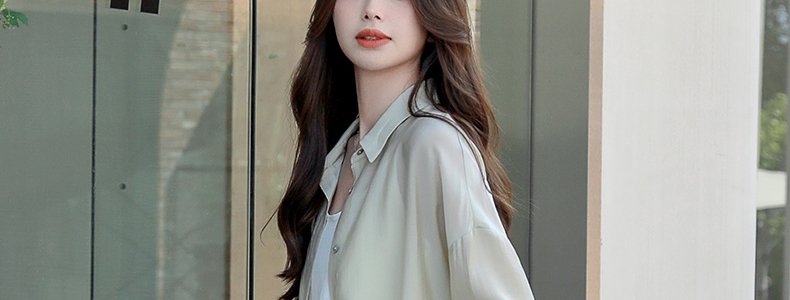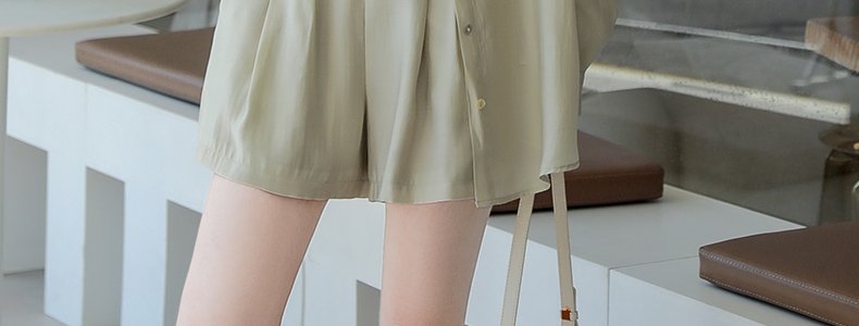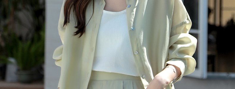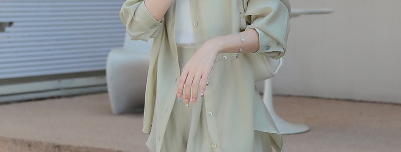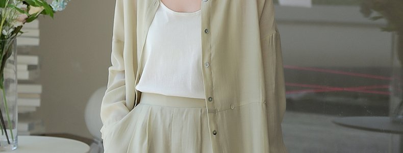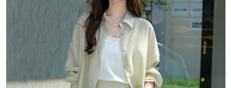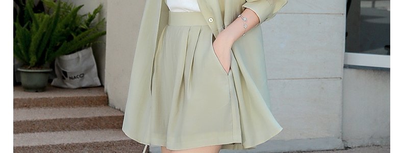 mashluxy 防晒三件套衬衣+吊带+短裤 豆绿色 L码