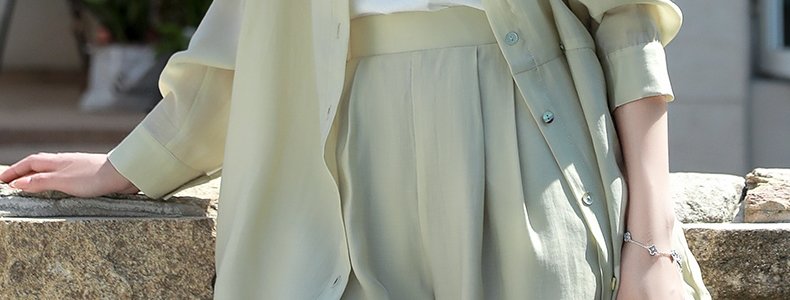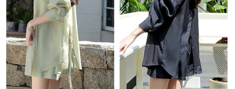 商品名称:mashluxy 防晒三件套衬衣+吊带+短裤 豆绿色 L码