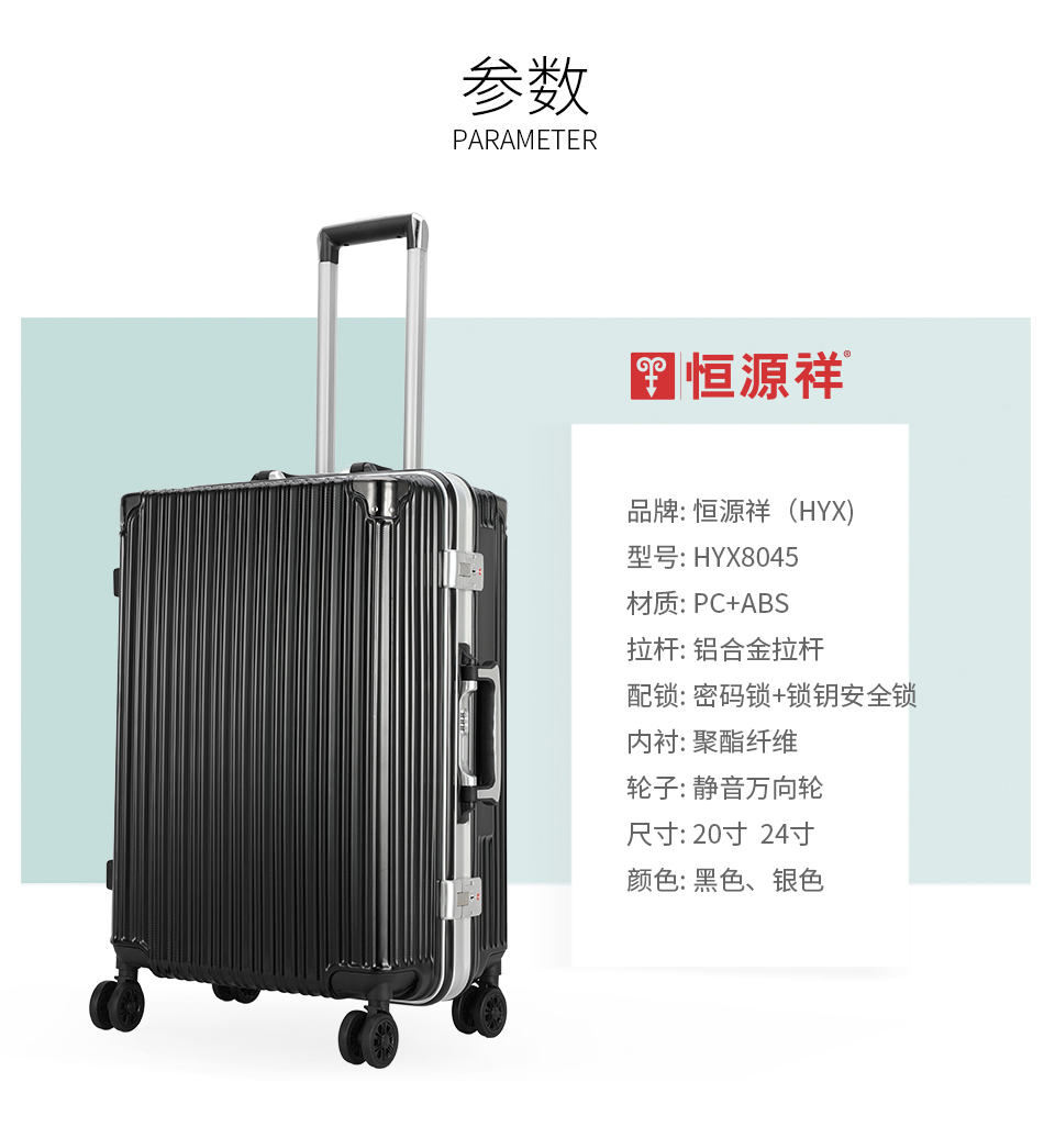 商品名称:恒源祥(HYX8045)条纹铝框拉杆箱20寸