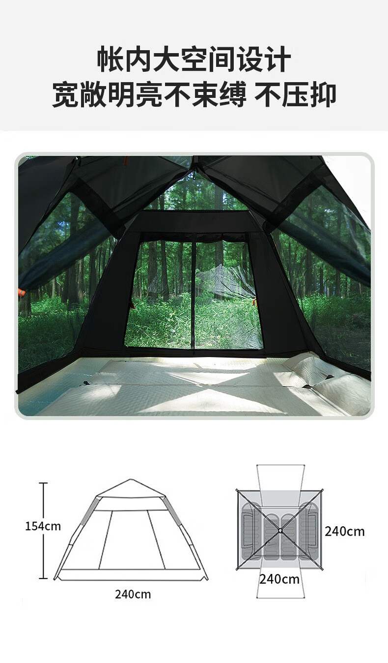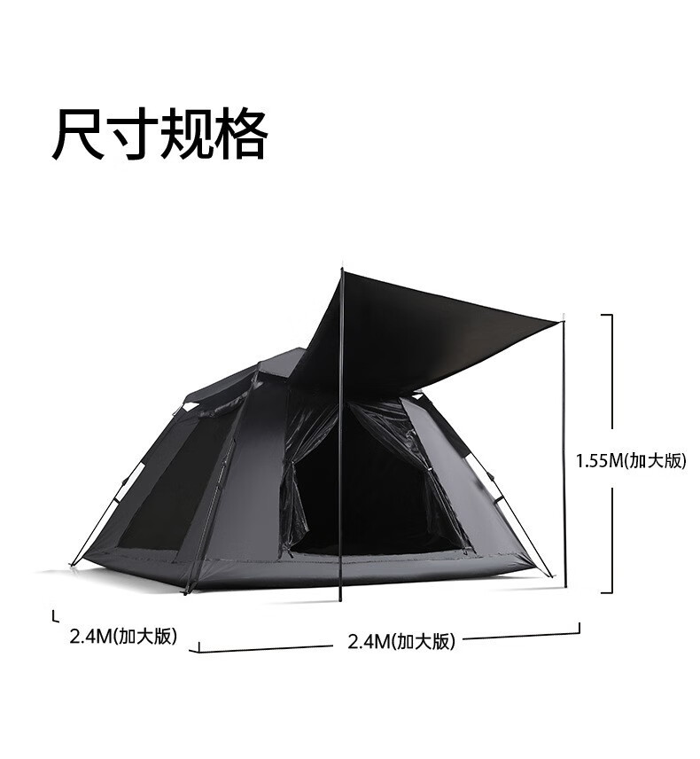 FTLY/飞图乐加大款户外液压全遮光黑胶帐篷ZP0502