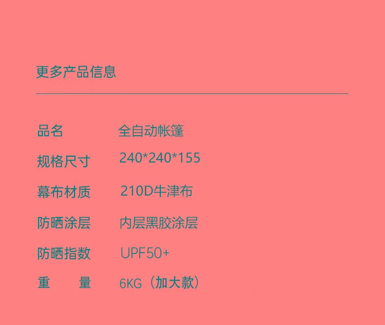 商品名称:FTLY/飞图乐加大款户外液压全遮光黑胶帐篷ZP0502