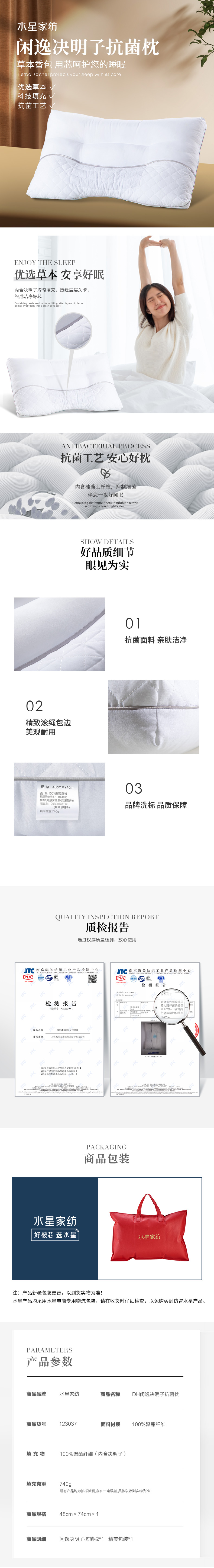 商品名称:【京东配送】水星家纺闲逸决明子抗菌枕2只