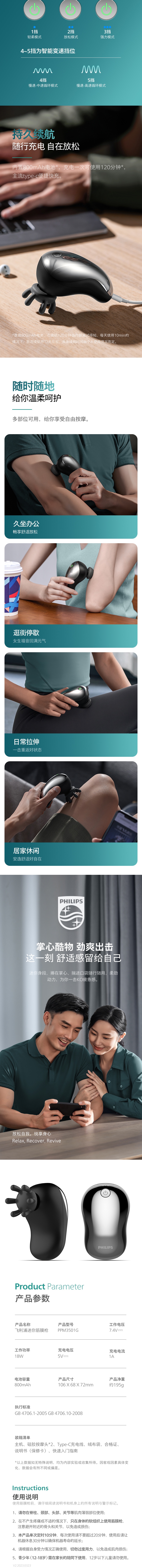 商品名称:PHILIPS/飞利浦迷你筋膜枪PPM3501G