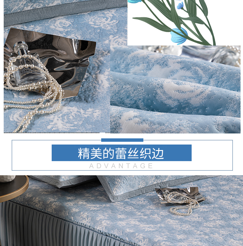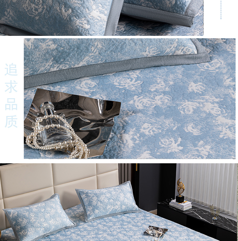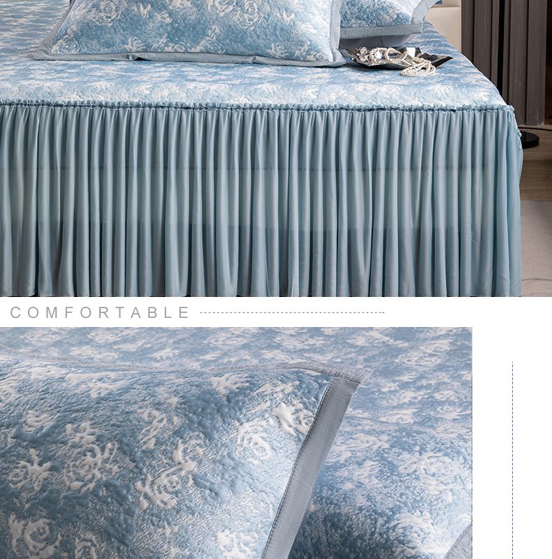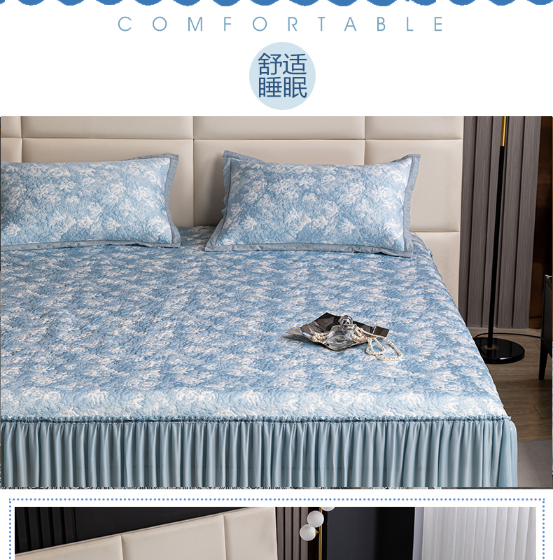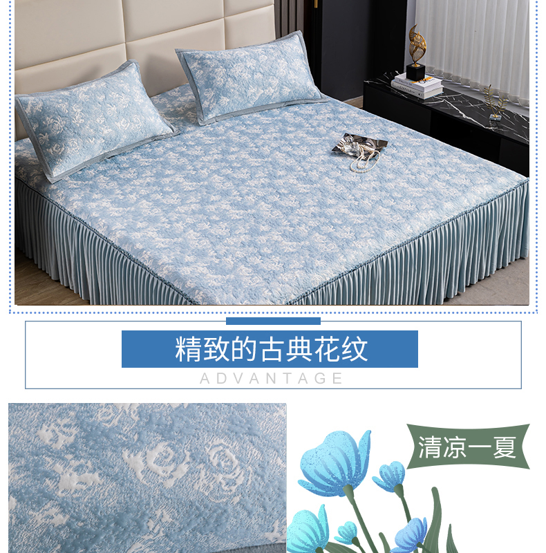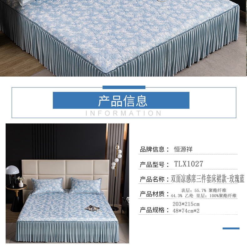 商品名称:【顺丰配送】恒源祥床裙款双面凉感席三件套-玫瑰蓝203*215cm(预售,预计4月20日之后发货)
