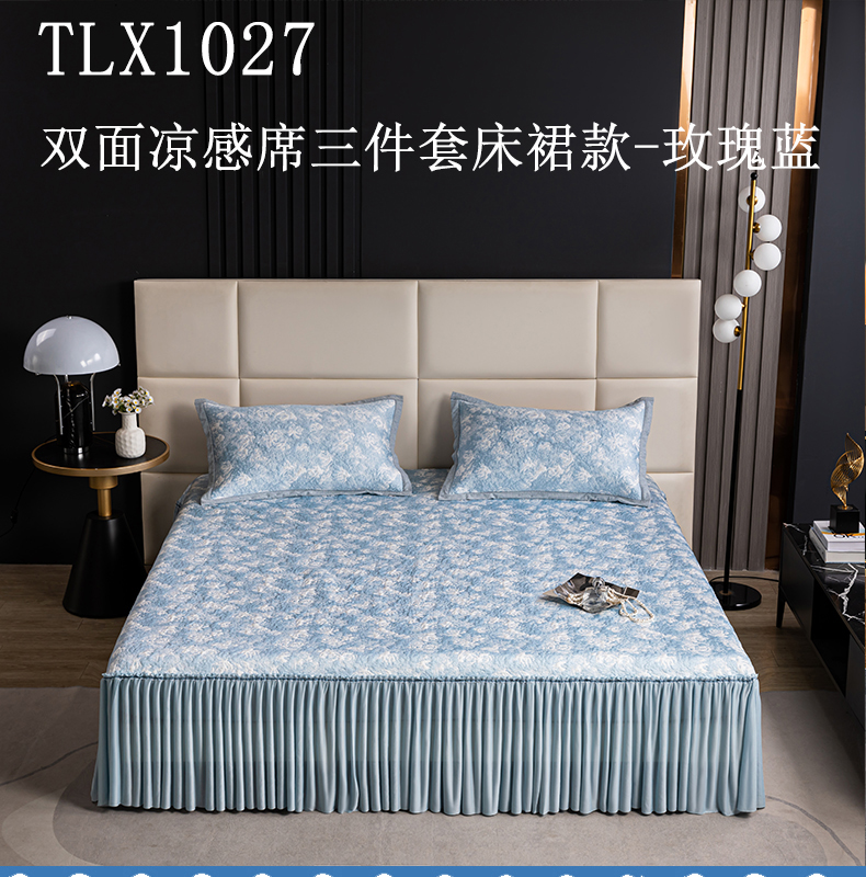 【顺丰配送】恒源祥床裙款双面凉感席三件套-玫瑰蓝203*215cm(预售,预计4月20日之后发货)