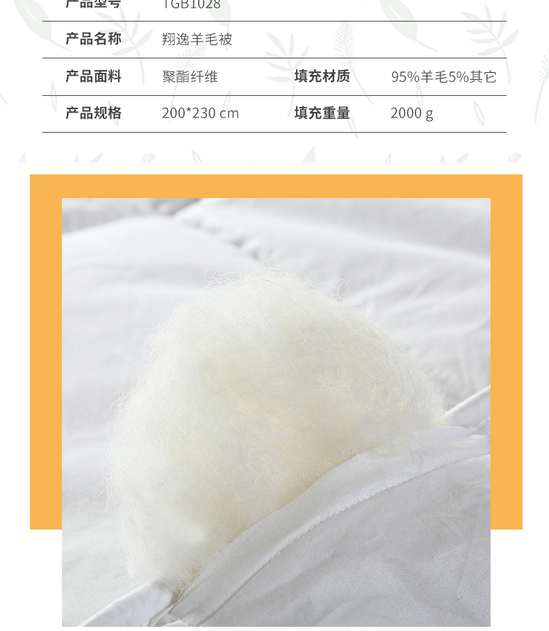 商品名称:恒源祥翔逸羊毛混合被200*230cm 2000g