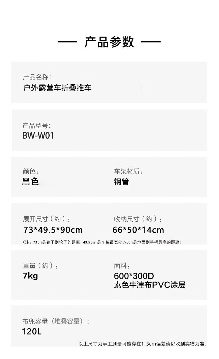 商品名称:【京东/顺丰配送】路悠悠户外露营折叠推车-黑色BW-W01