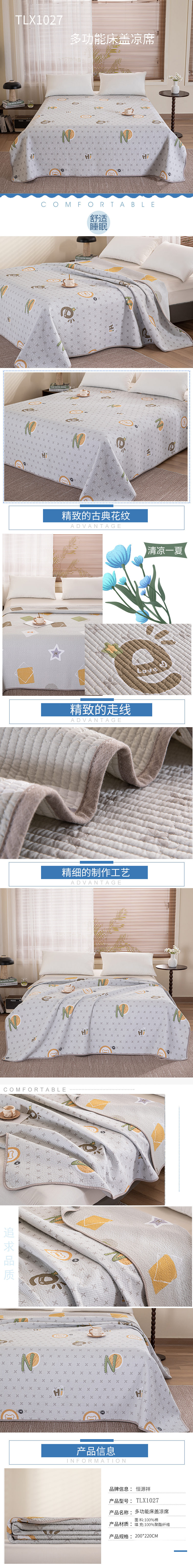 商品名称:【顺丰配送】恒源祥多功能床盖凉席200*220cm