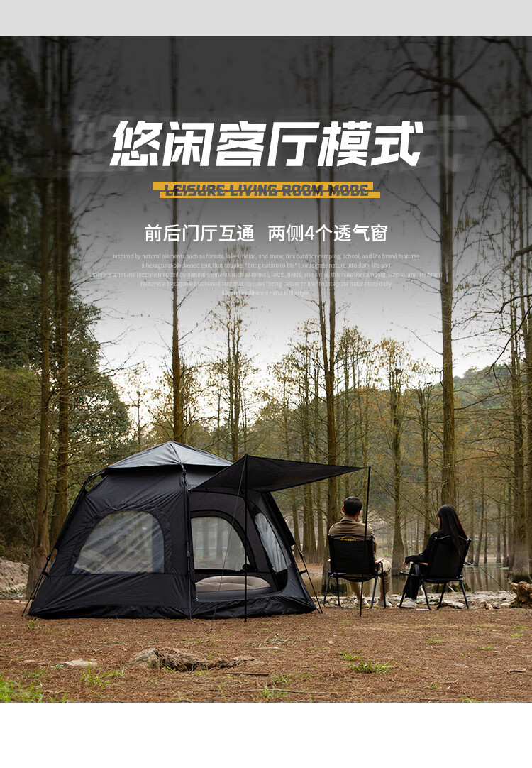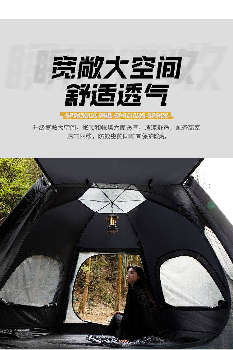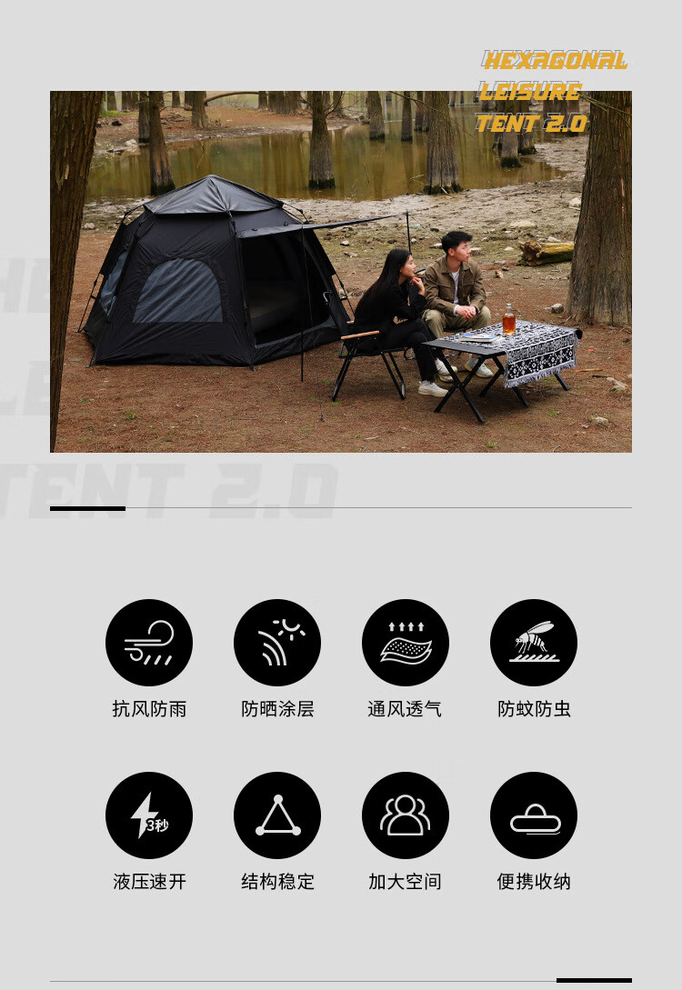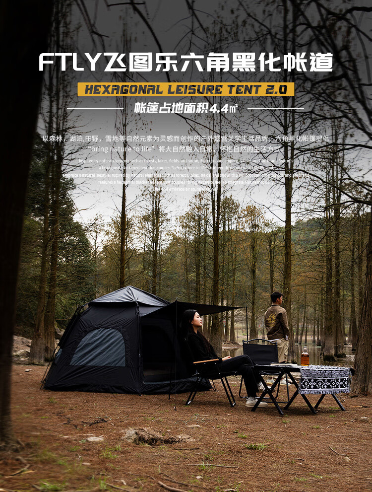 【京东/顺丰配送】FTLY/飞图乐加大号5-8人六角黑化帐篷ZP0801
