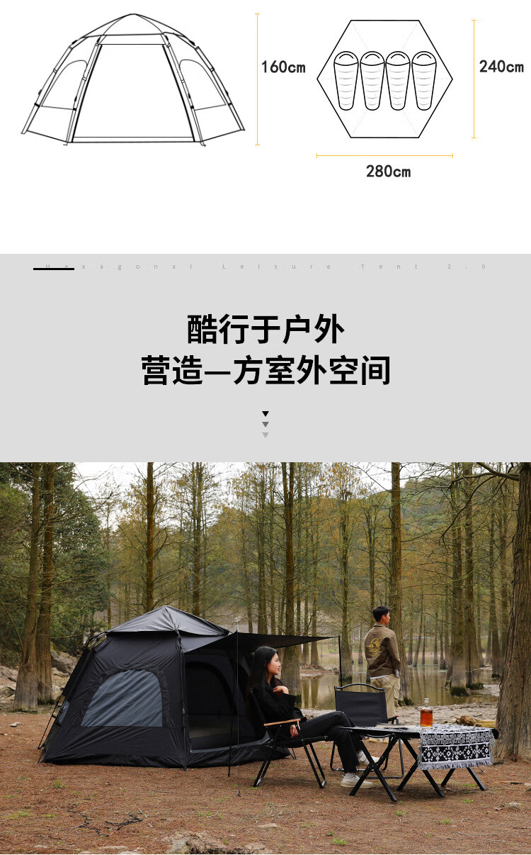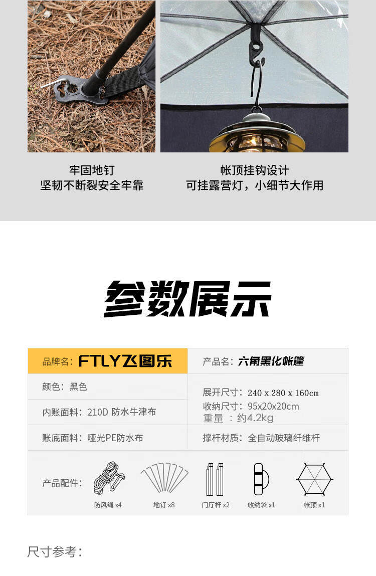 商品名称:【京东/顺丰配送】FTLY/飞图乐加大号5-8人六角黑化帐篷ZP0801