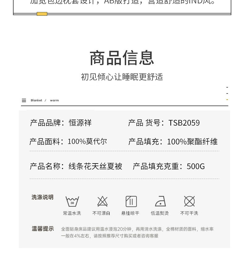 商品名称:【顺丰配送】恒源祥线条花天丝夏被200*230cm 500g